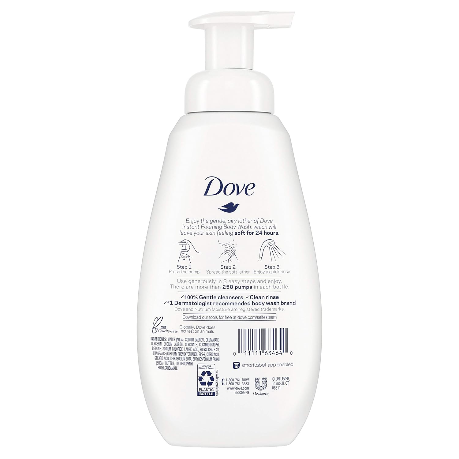 Experience a shower like no other with Dove Instant Foaming Body Wash, with the warm scent of vanilla, sandalwood, and musk. It’s the first-ever self-foaming pump bottle from Dove, providing the light skin feel you want with the care your skin needs. The instant foam contains our NutriumMoisture technology and our mildest cleansers, creating a light, airy lather that rinses away quickly. Dove Shea Butter with Warm Vanilla Instant Foaming Body Wash has a nourishing and moisturizing body wash formula that reaches deep* into the surface layers of the skin and helps replenish skin’s natural nutrients, which are essential for maintaining your skin’s natural moisture balance. This helps leave skin looking and feeling healthy, soft, and smooth. To use, simply press the pump, spread the soft lather, and enjoy a quick rinse. With over 250 pumps per bottle, you can use the shower foam generously. Dove has a 60-year history in skin cleansing, now giving you more skin cleansing options without compromising on care. At Dove, our vision is of a world where beauty is a source of confidence, and not anxiety. So, we are on a mission to help the next generation of women develop a positive relationship with the way they look – helping them raise their self-esteem and realize their full potential. *Within the stratum corneum.