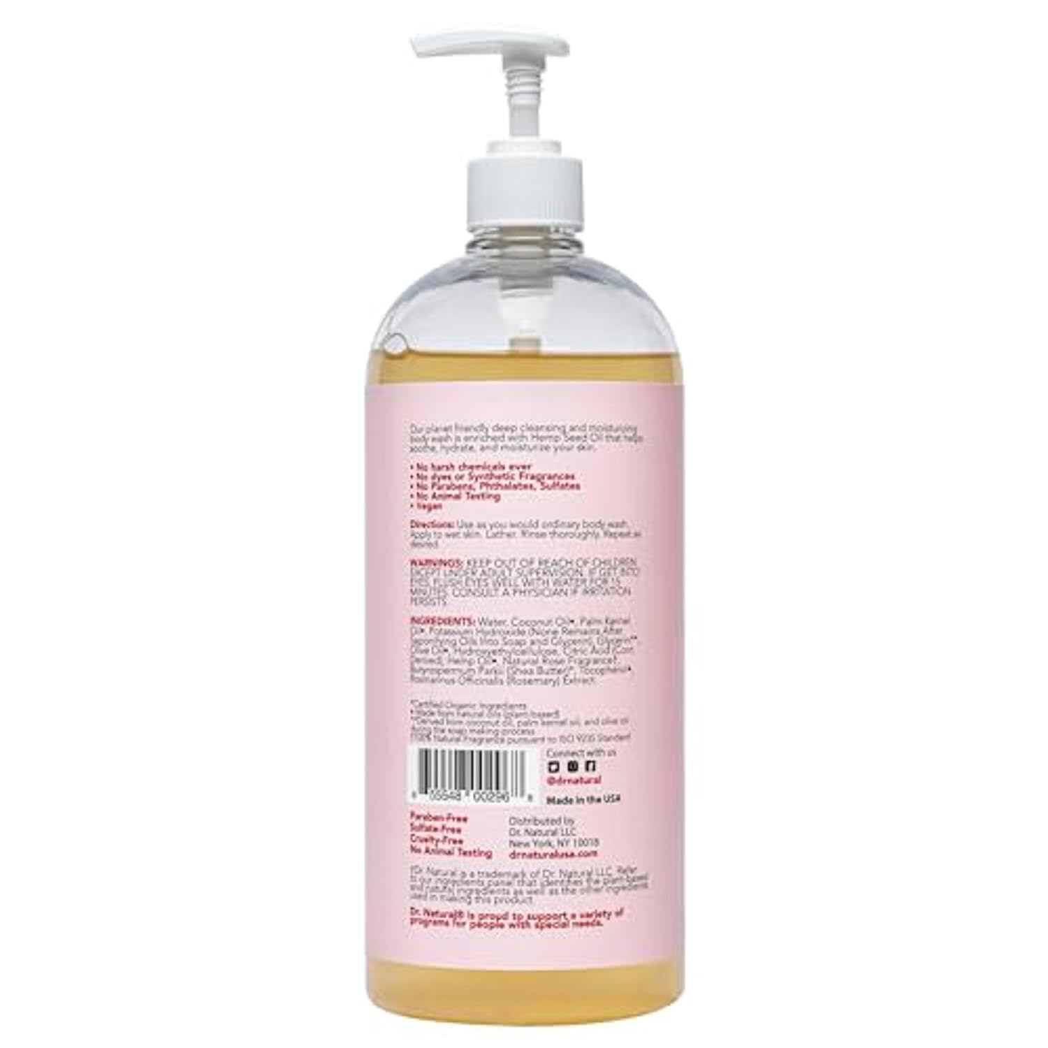 Dr. Natural’s Hemp Body Wash is a luxurious all-natural body wash meticulously crafted to cater to the unique needs of both women and men. This hydrating body wash embodies the essence of nature with its soothing and moisturizing benefits, particularly suited for sensitive skin. Enriched with omega-3 and omega-6 fatty acids, this body wash offers a refreshing deep cleanse that not only revitalizes the skin but also helps to reduce acne and oily skin. Our all natural body wash soothe irritation and reduce dry skin without clogging pores, making it an ideal choice for those seeking a body wash for sensitive skin. It strengthens the outer layer of the skin, providing anti-aging benefits, and moderates oil production, which significantly reduces acne. As a natural body wash, Dr. Natural’s Hemp Body Wash ensures only the purest ingredients are used, free from artificial chemicals, maintaining a cruelty-free promise for conscious consumers.