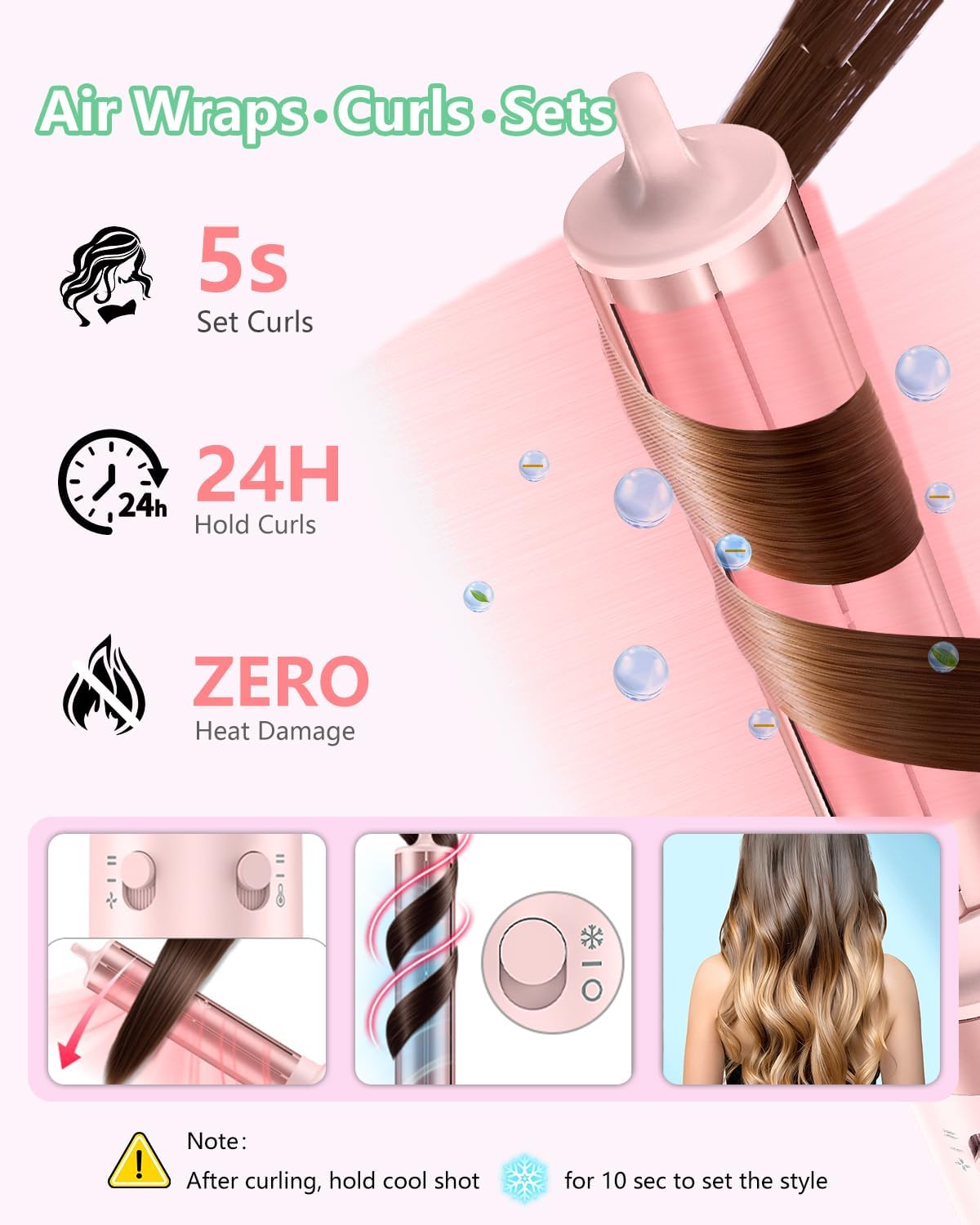Intelligent Temperature Control No Heat Damage: Our 1400W dual voltage hair dryer drying hair rapidly—just 2-3 minutes for short hair and 8-10 minutes for long hair. With intelligent temperature control tech, dy-sons air wrap monitors heat 1,000 times per second to maintain consistent temperatures at 120°F, 160°F, and 195°F across different settings. MESCOMB air curler for hair ensures professional-grade results without heat damage. Fit for all hair types—whether curly, straight, fine, or thick—it delivers salon-quality style at home