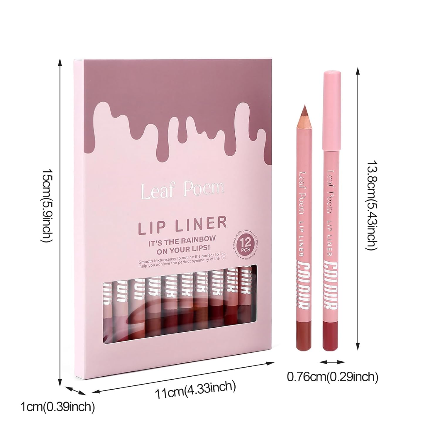 【12Pcs Lip Liner Set】This creamy lip liner pen comes in a variety of classic shades, from subdued browns to glamorous pinks to vibrant and sensual reds. Either shade will help you define the contours of your lips and create a glamorous and sophisticated lip look