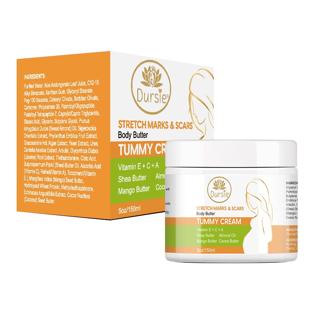 STRETCH MARK PREVENT PREGNANCY Keep your skin smooth and reduce the appearance of stretch marks with DURSIE stretch mark SOOTHES DRY AND ITCHY SKIN. This includes our Maternity Stretch Mark Prevention Cream and Hydro-Thermal Accelerator. ENHANCE THE EFFECTS OF YOUR STRETCH MARK CREAMS Get the most out of your stretch mark removal cream and body cream! DURSIE Hydro-Thermal Accelerator is self-warming and opens your pores to allow key ingredients to better penetrate into your skin. This maximizes the absorption of nutrients to help boost the effectiveness of o product DURSIE BEAUTY. Apply it before using your stretch mark removal and prevention cream. We recommend rubbing a quarter-sized amount on your skin twice a day over 60 days for best results. MADE WITH NATURAL INGREDIENTS (Vitamin E+C+A) Pregnancy is a very delicate journey and we want to give you the best care that you deserve. This is why we chose only premium natural ingredients for your pregnancy and post-partum skincare. DURSIE BEAUTY Maternity Stretch Mark & SCARS Cream is made with a blend of botanical oils and Shea Butter, Cocoa Butter, Almond Oil, Mango Butter. Our products are made with your sensitive skin mind. They are non-greasy, non-staining, with no strong odor so you don’t have to worry about unnecessary additives. It is also hypoallergenic so it is safe to use during and after pregnancy. Our plant-based formula is ideal for areas prone to stretch marks like breasts, stomachs, hips, and thighs. LOOK AND FEEL YOUR BEST You deserve to look radiant and beautiful from the inside out. Our products are all designed to produce positive and visible changes that transform your skin throughout your pregnancy.
