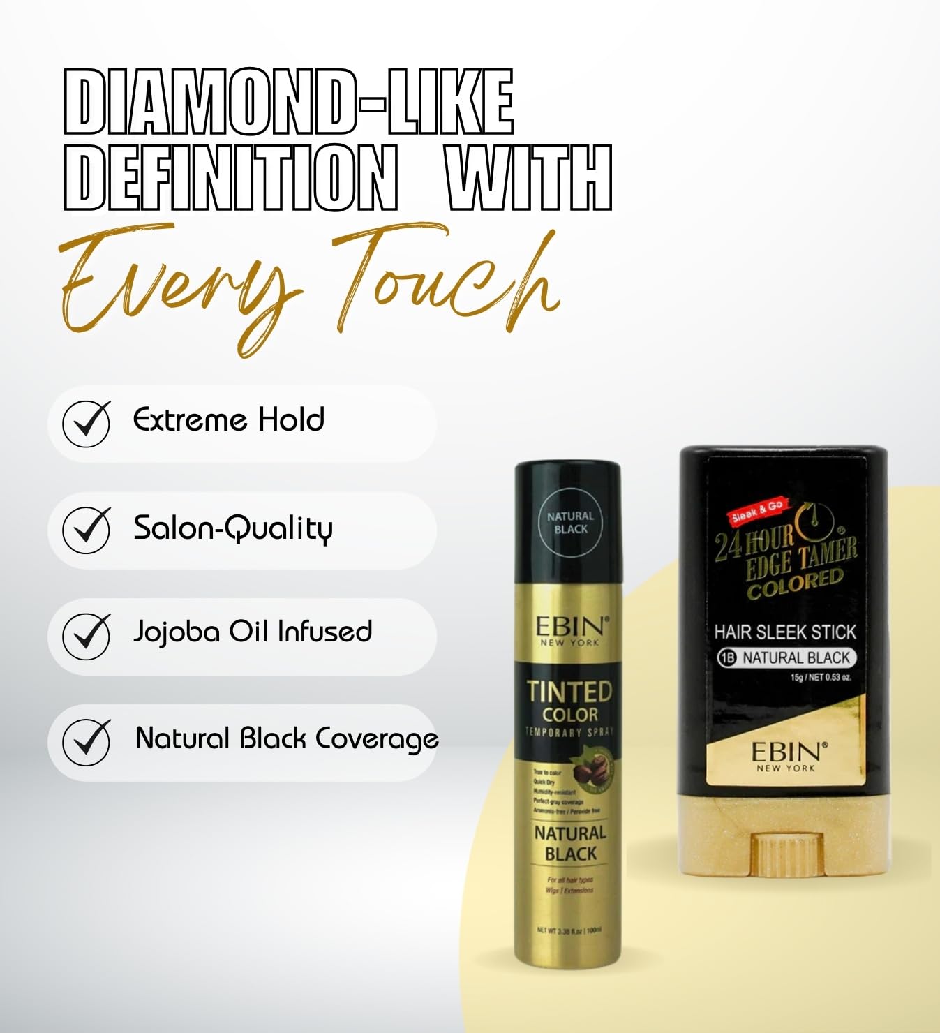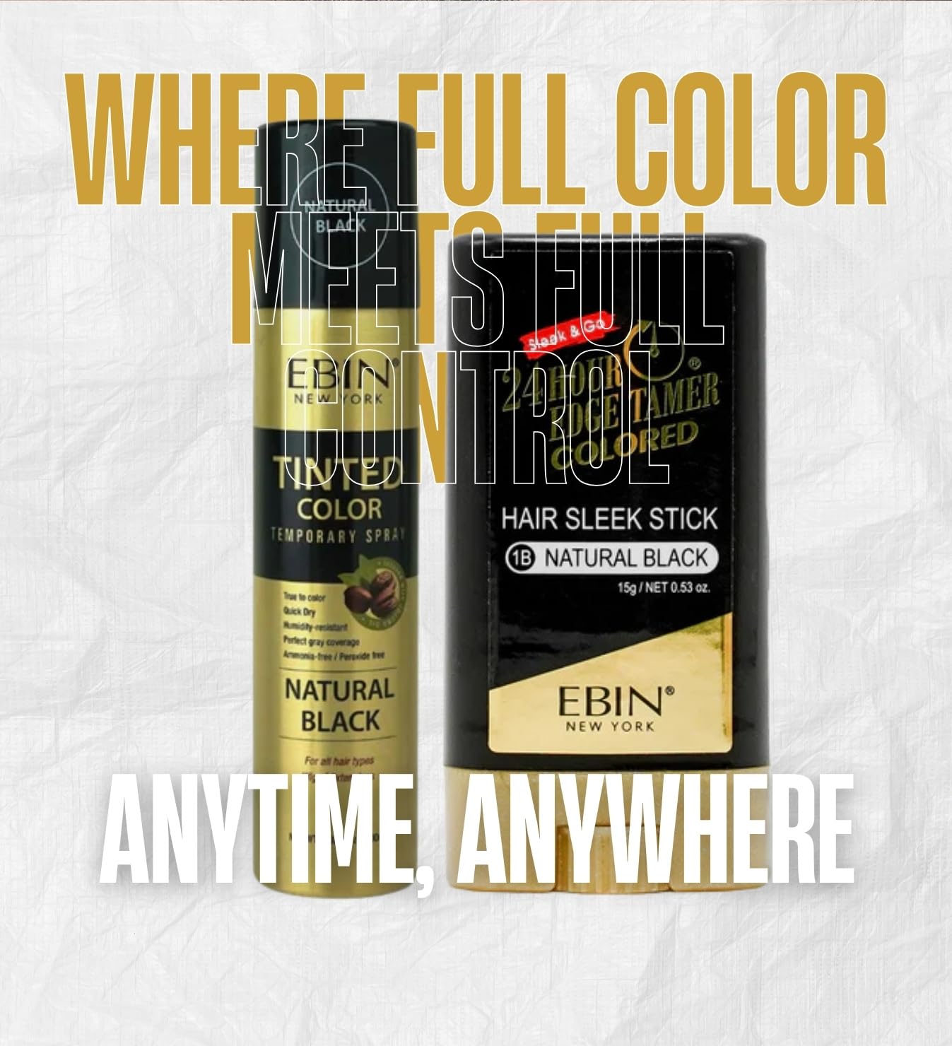 𝗧𝗜𝗡𝗧𝗘𝗗 𝗖𝗢𝗟𝗢𝗥 & 𝗘𝗗𝗚𝗘 𝗖𝗢𝗡𝗧𝗥𝗢𝗟 𝗦𝗘𝗧 – This gift set includes 1x Tinted Color Temporary Spray 3.38 ounces Natural Black and 1x 24 Hour Colored Sleek Stick 0.53 oz Natural Black. Covers roots; tames edges. (Packaging May Vary)