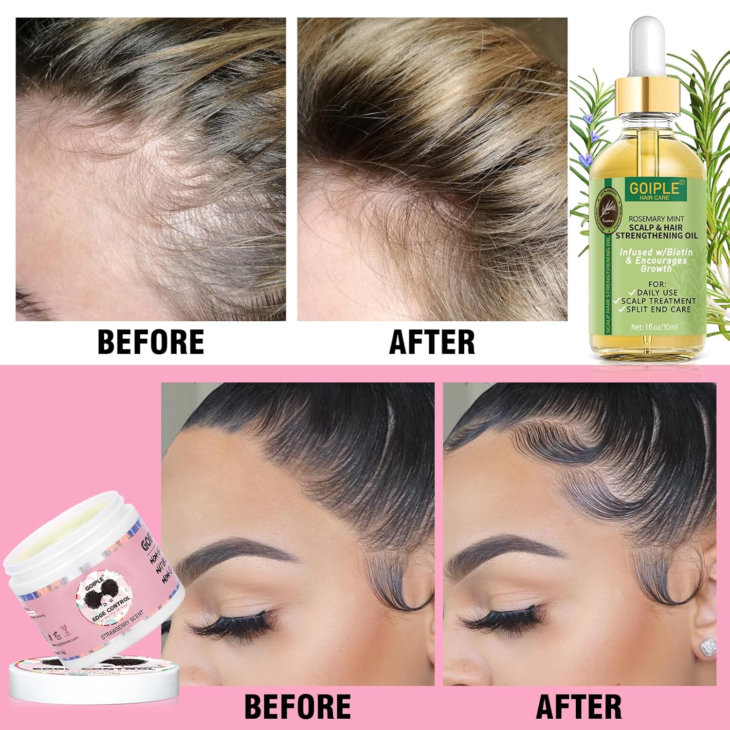Edge Control Wax & Rosemary Oil Set: The package included:1pc 4oz edge control+ 1pc hair oils for hair grow+ 1pc elastic bands for wig+ 1pc rat tail brush+ 1pc edge brush+ 1pc bristle brush+ 1 pc sleeping bonnet.Got all the tools ready for you