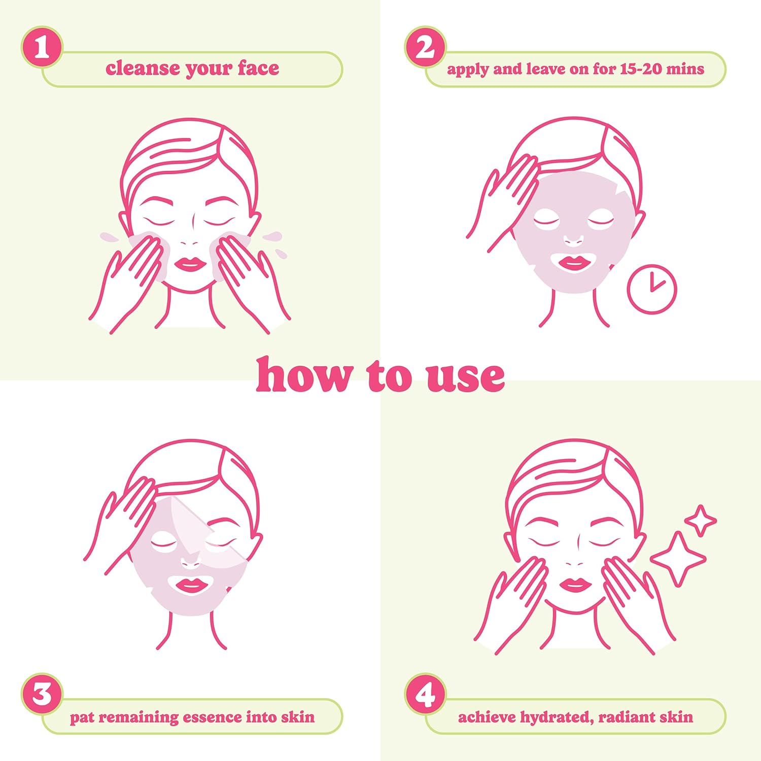 How To Use: Cleanse and tone your face, apply mask for 15–20 minutes, remove, and gently press remaining essence into skin.