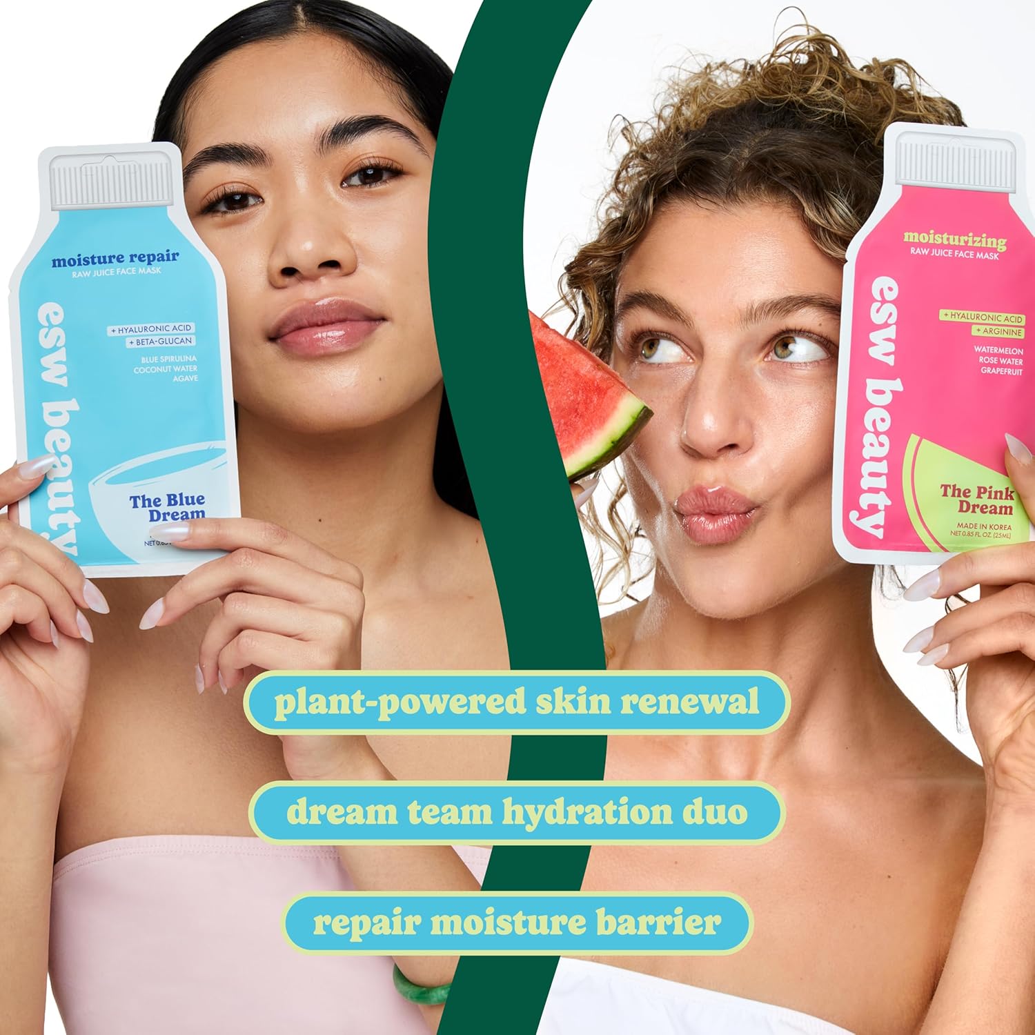Be the first to review “ESW Beauty Hydrating Face Masks – 2-Pack Raw Juice Sheet Mask Set – Moisture Repair & Radiance Skincare Set – Includes The Pink Dream & Blue Dream”