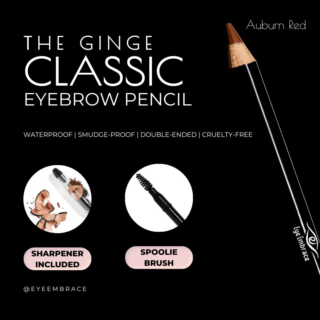 Eye Embrace The Ginge Classic: Auburn Red Wooden Eyebrow Pencil – Waterproof, Double-Ended Pencil with Sharpener & Spoolie Brush, Cruelty-Free