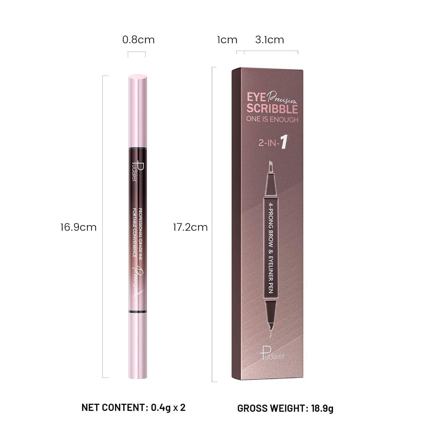 Dual-ended Eyebrow Pen: With a unique 4-fork tips, this pen effortlessly fills in sparse areas, while the micro-fine brush with curved tip lets you outline with precision. Achieve natural-looking eyebrows with ease;