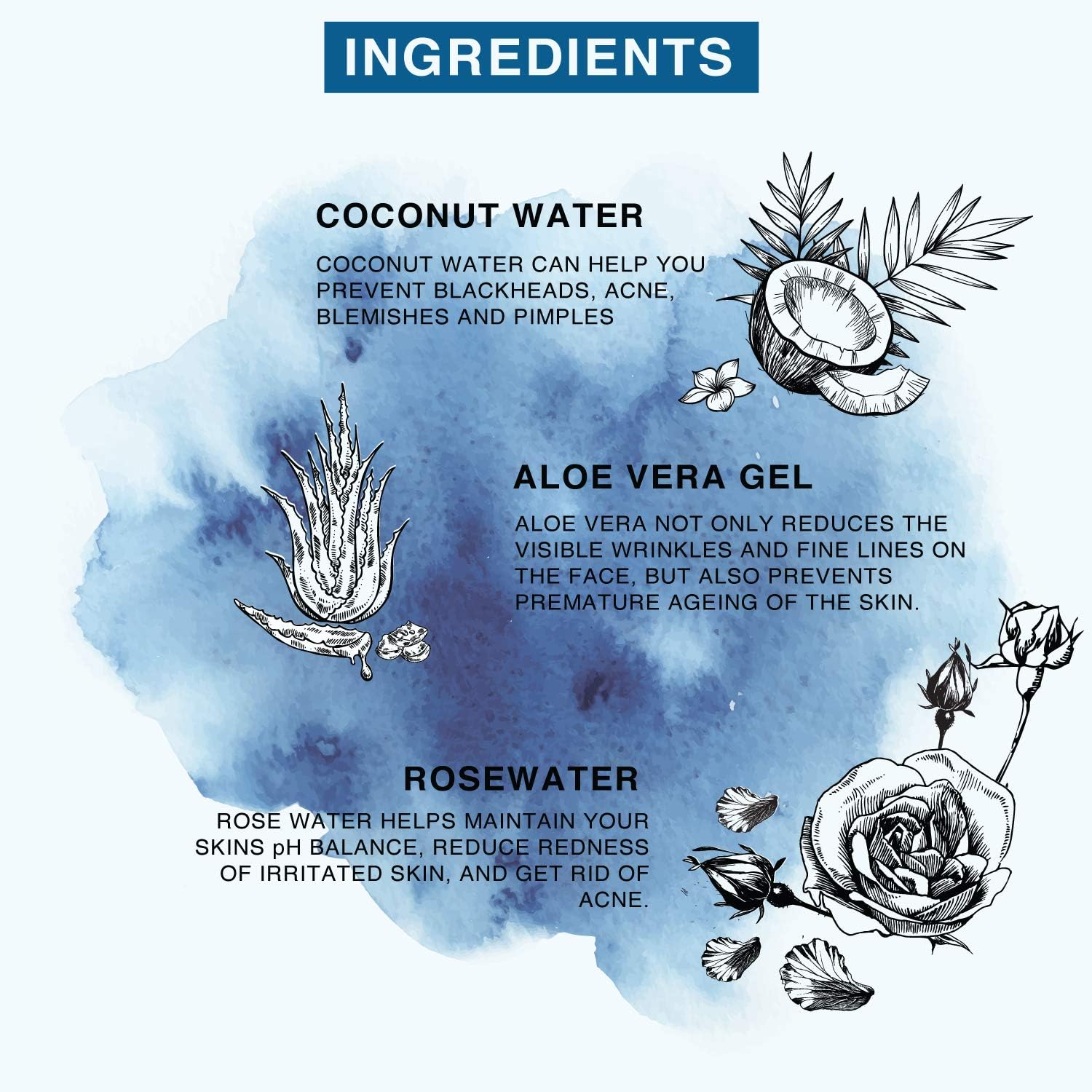 Hydrating coconut water mist conditions and tones for a glowing complexion enriched with antioxidants and rose water to minimize pores and provide instant burst of radiance