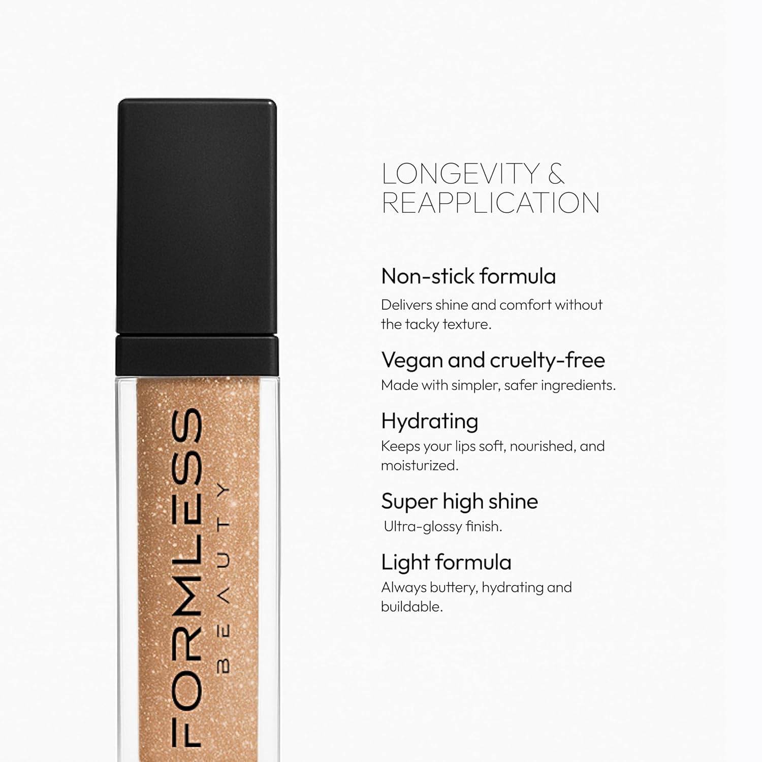 Formless Beauty by Jenny McCarthy Lip Gloss – Radiance Lip (Nude with Bronze Glitter) – Hydrating, Clean, Non-Toxic, High-Shine Finish