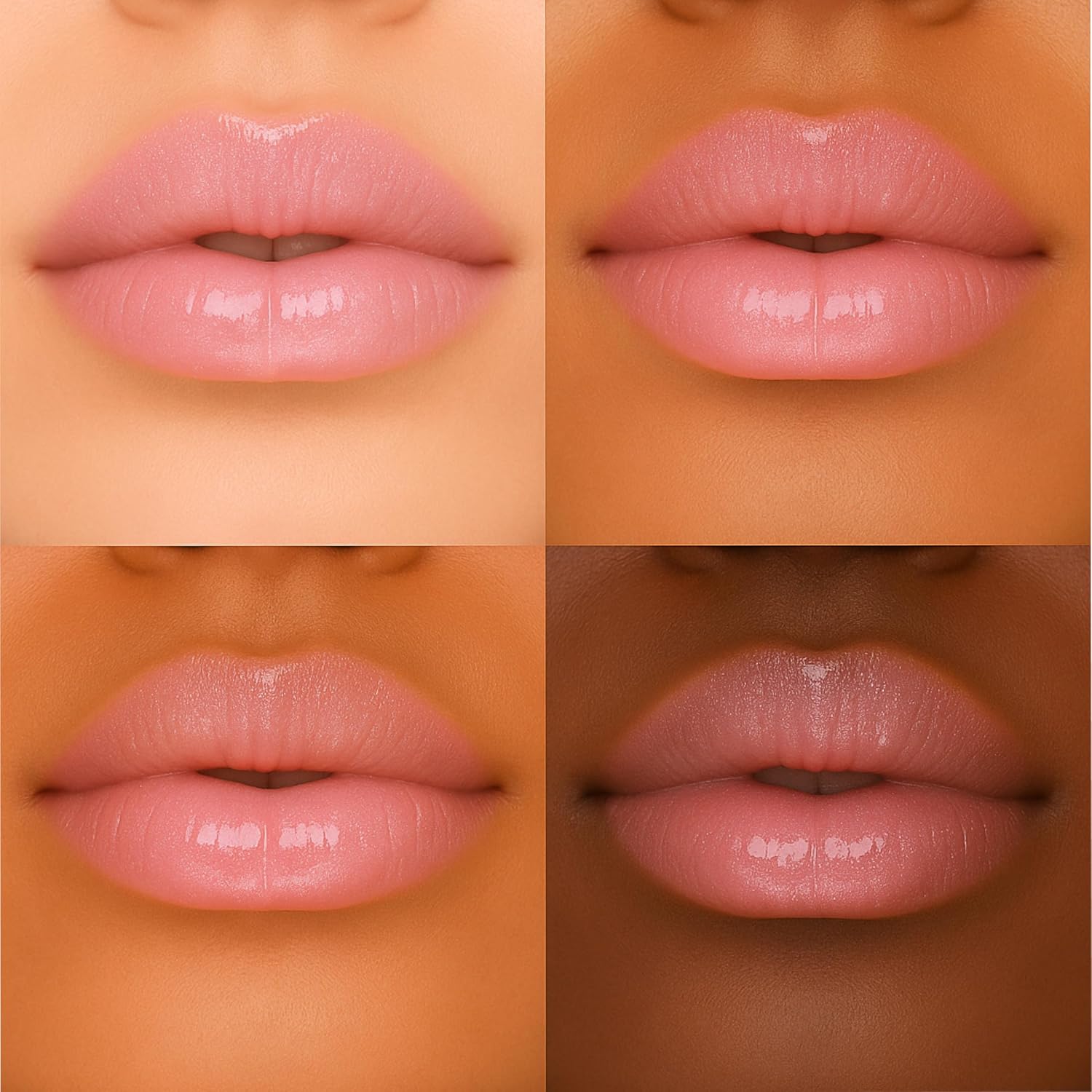 Vibrant Baby Pink Pigment — The Love Lip gloss delivers a full-coverage sheer-pink pigment enriched with soft cool undertones; built to stand out solo or layer over lipstick without turning too warm.