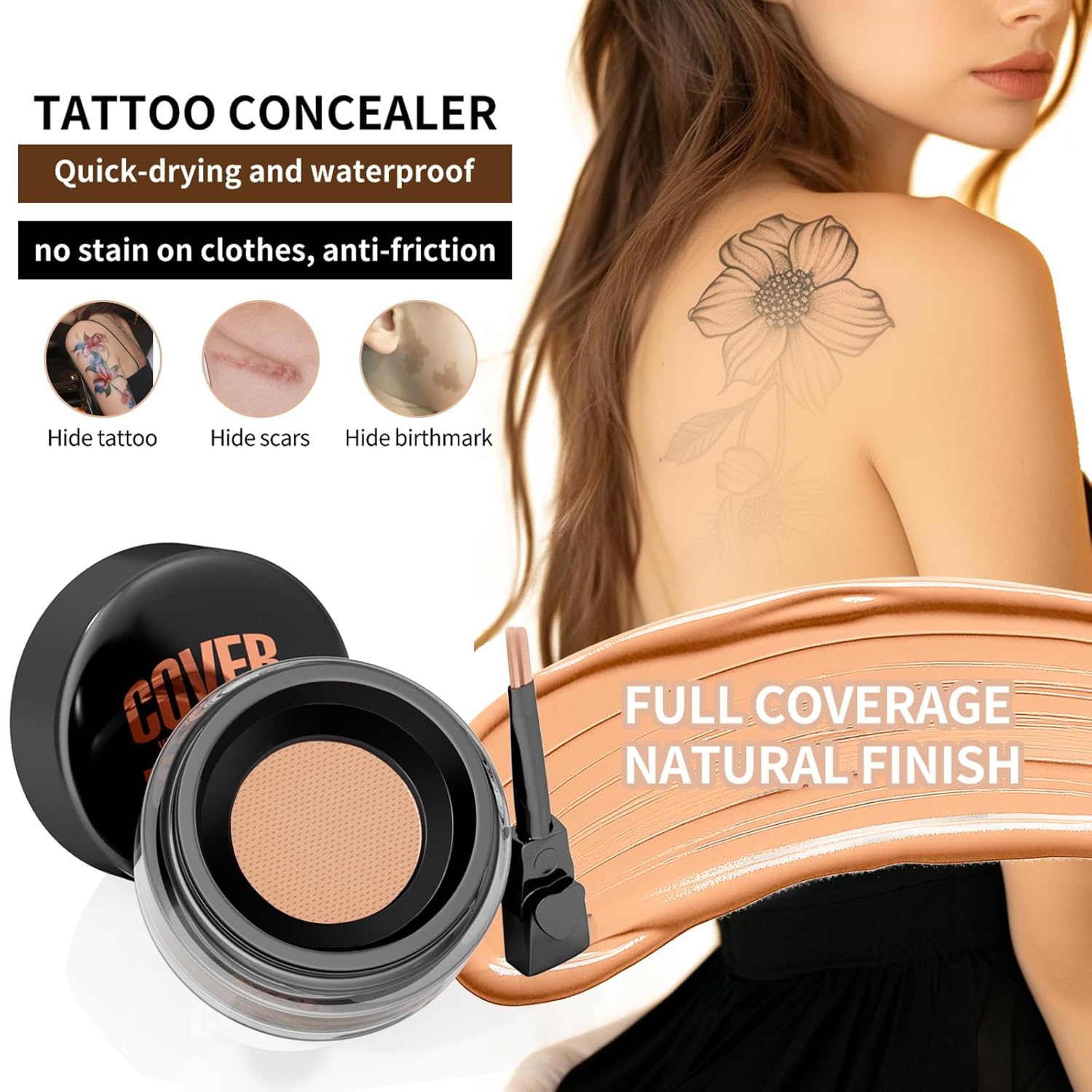 Multi-Purpose Full Coverage Concealer Cream with Built-In Brush & Air Cushion Mesh: Ideal for tattoo coverage, dark circles, and blemish correction. Features a dual-tool design (brush + cushion mesh) for precise application and portability. Waterproof formula blends naturally with skin tone, offering long-lasting full coverage while maintaining a lightweight, non-greasy finish for face and body.