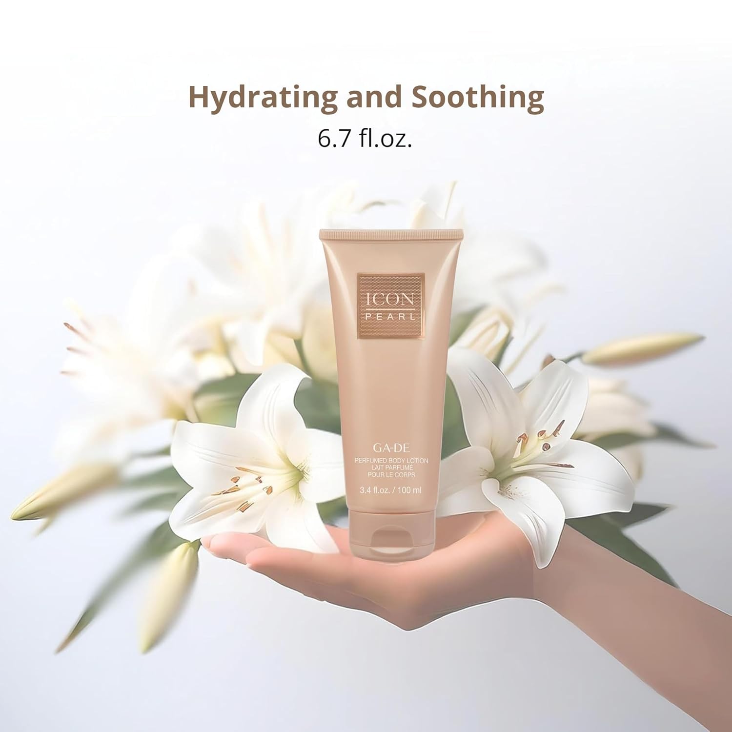 PERFECT TRAVEL LOTION. Compact and convenient, our Icon Pearl Perfume Body Lotion is the perfect travel lotion. Indulge in its sensual fragrance and experience velvety soft skin wherever you go.