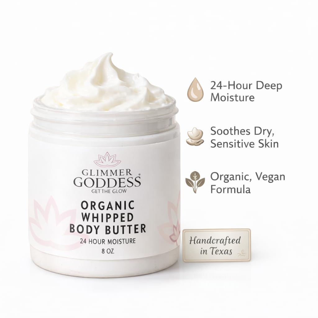 GLIMMER GODDESS Organic Whipped Body Butter (Sandalwood & Vanilla Bean) 8 oz