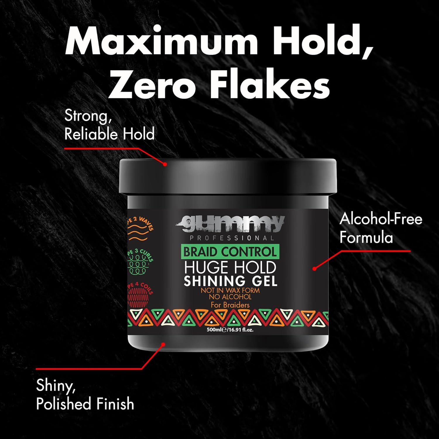 Gummy Professional Braid Control Hair Gel – Extreme Hold Edge Control for Braids, Locs, and Dreads – Shining Styling Gel for Men and Women – Anti-Frizz, Residue-Free, Professional Formula – 500ml
