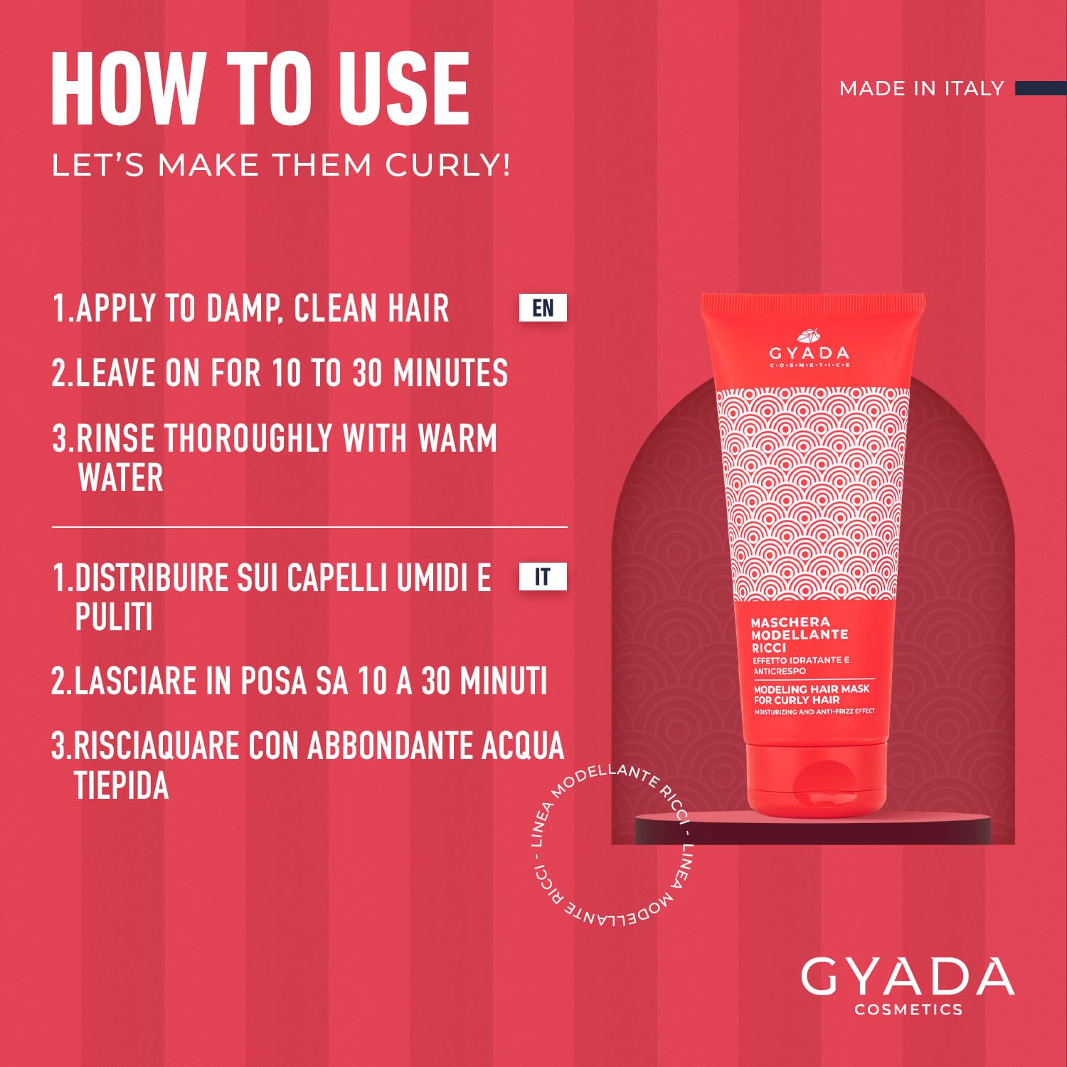 MOISTURIZING AND ANTI-FRIZZ MASK: Mask for curly and frizzy hair made with moisturizing ingredients, ideal for restoring softness and elasticity to dry, frizzy, and damaged hair.