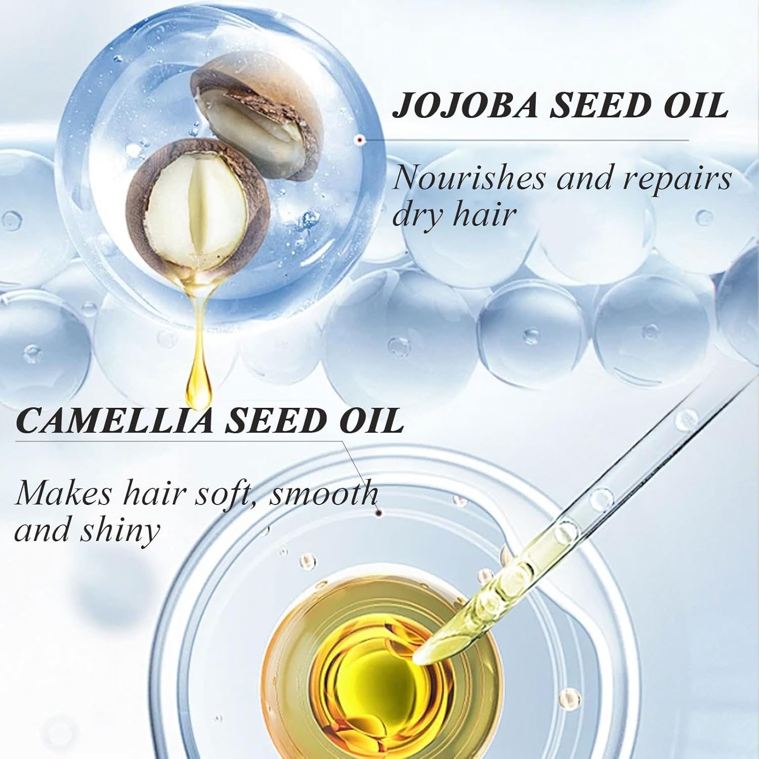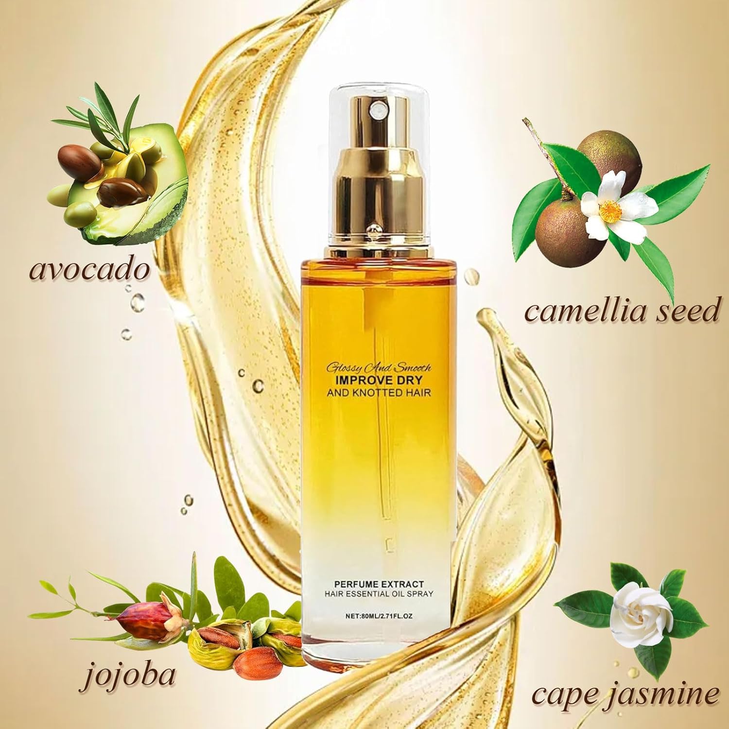 Hair strengthening: This conditioning oil spray makes hair smooth and easy to manage, soft and frizz-free all day long. The smooth texture deeply penetrates the hair, improves the natural state of hair quality, and brings salon-level silky effect.