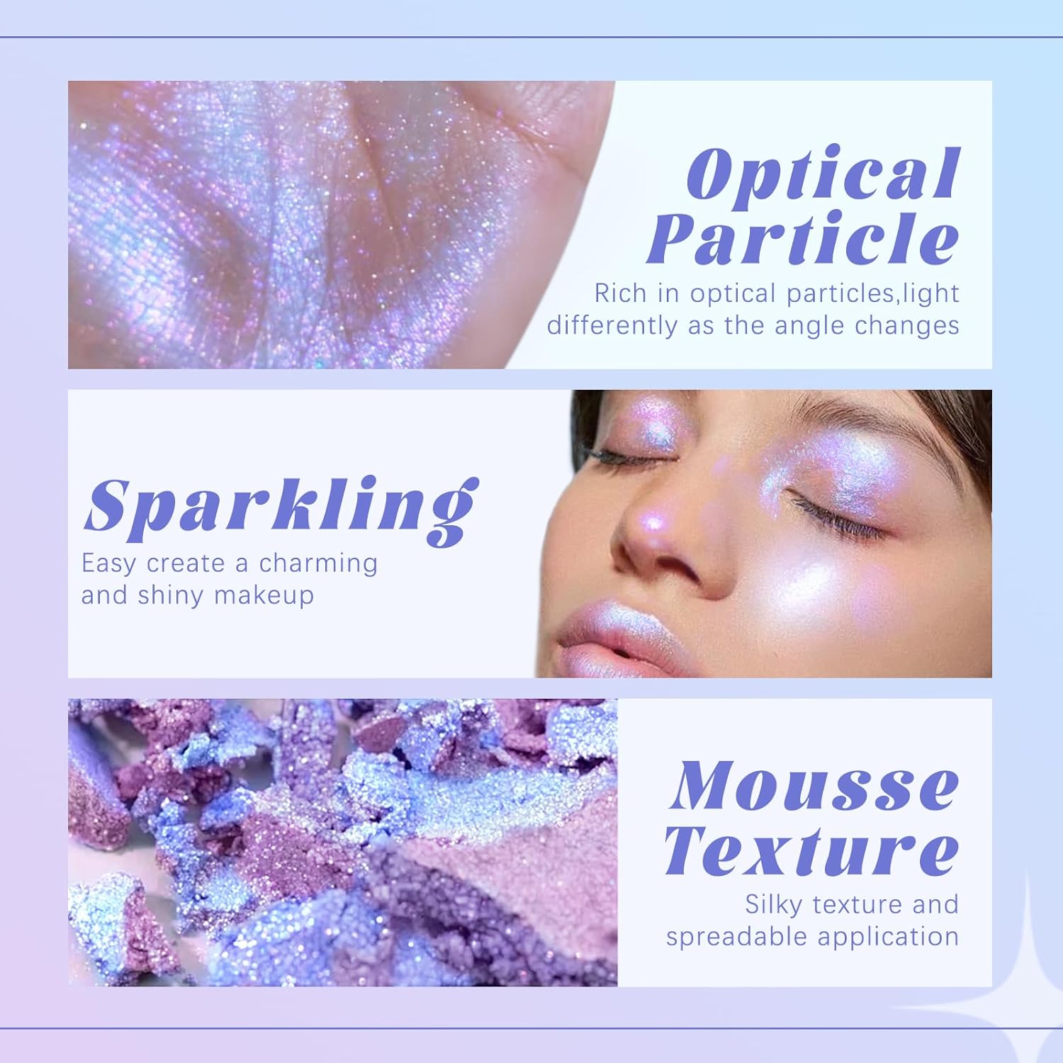 Silky Smooth Texture: The cream to powder texture is silky smooth and applies effortlessly, smudging with just your fingers. Doesn’t smudge or come off and gives a seamless, luminous finish, let you become the focus of the sparkle