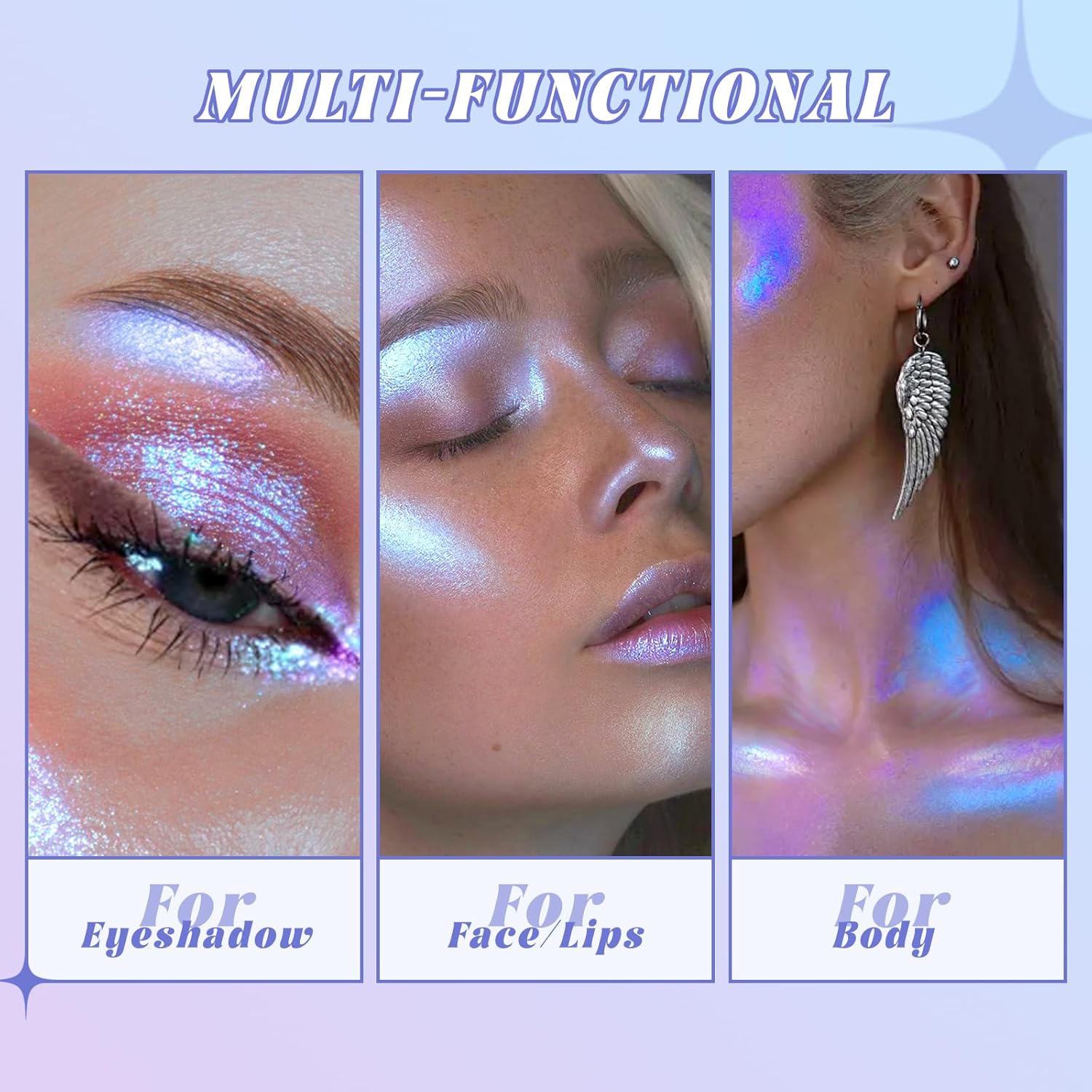 Holographic Duochrome Purple Blue Eyeshadow&Highlighter Palette, Color Shift Glitter Iridescent Cream Highlighter, Smooth Long Lasting Sparkling Eyeshadow Mermaid Facial Illuminator Makeup#04