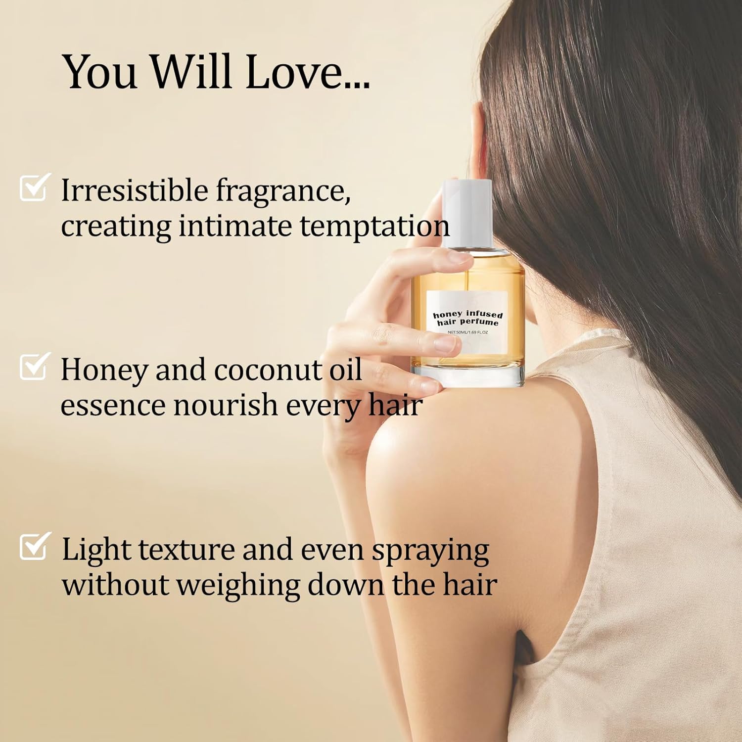 Glamorous Hair Perfume: Infused with natural honey and coconut oil, the irresistible floral fragrance emanates from every strand of hair, lingering around you and instantly enhancing your charisma.