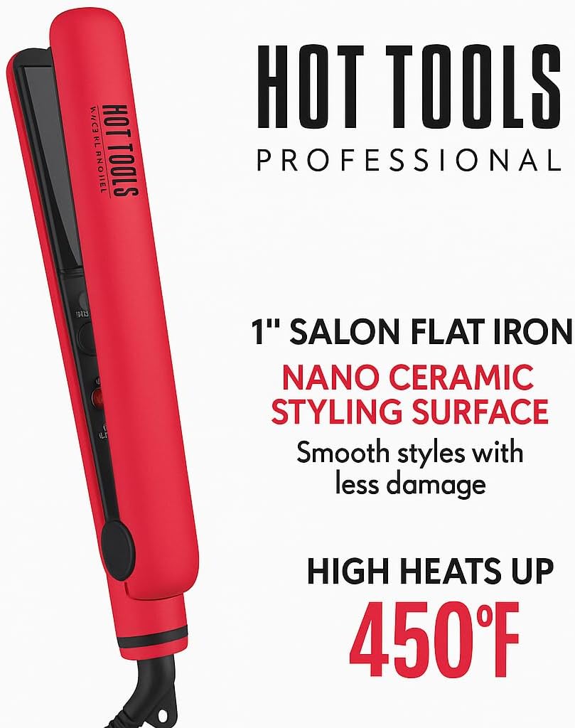 Be the first to review “Hot Tools Professional 1” Nano Ceramic Flat Iron for Hair – High Heat Up to 450°F, Dual Voltage, Salon-Quality Straightener & Curler with Rounded Edges, Fast Heat Up, Red”