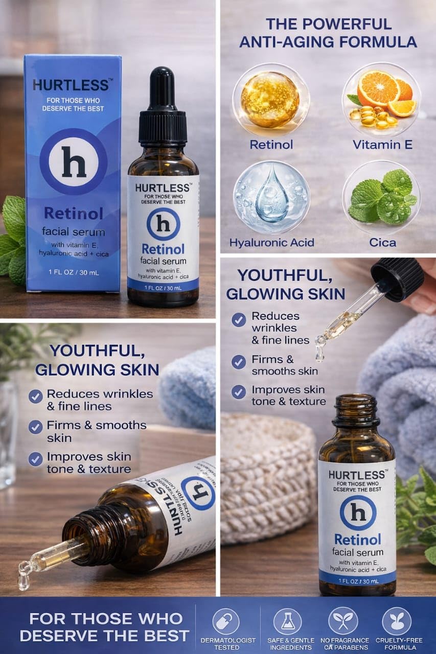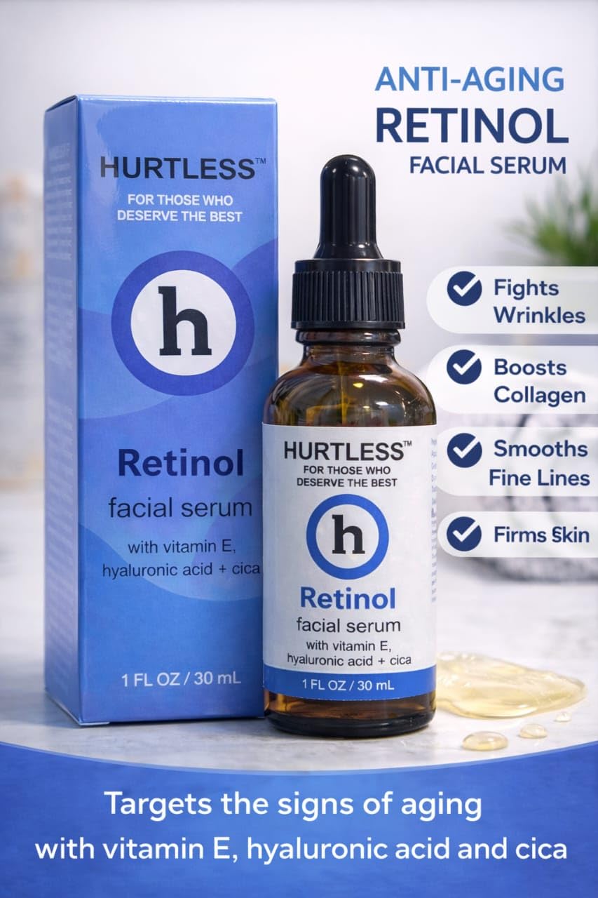 Be the first to review “HURTLESS Retinol Face Serum for Anti Aging & Dark Spots – 0.3% Retinol Serum with Hyaluronic Acid & Vitamin E – Reduces Wrinkles, Fine Lines & Acne – Non-Comedogenic, Skin Care for Smooth Skin”
