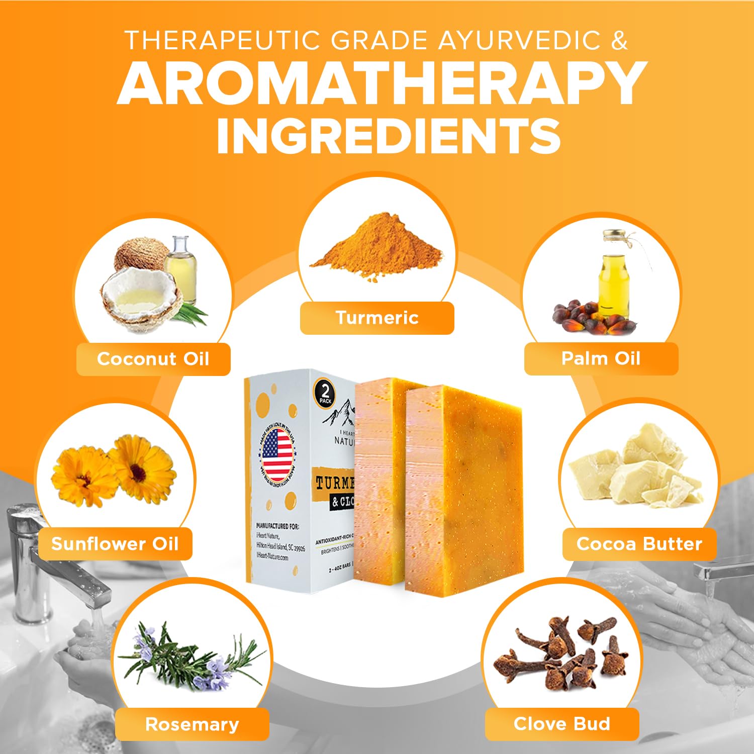 iHeart Nature Organic Turmeric Soap for Dark Spots & Acne with Clove Bud (2 Packs) – Face & Body Bar – Rich, Creamy Lather for Natural Skin Glow Aromatherapy