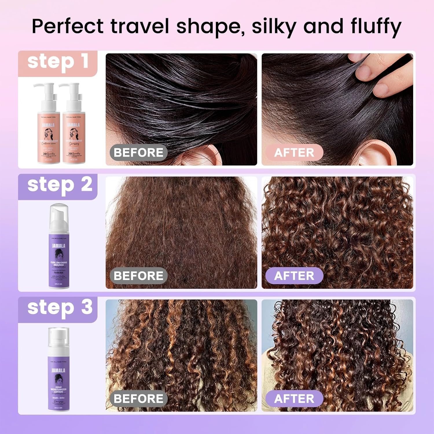JAMALA Travel Size Hair Shampoo, Hair Conditioner, Curl Defining Mousse, Hair Moisturizer Lotion Formulated for all Hair Types , Specially for Dry and Curly Hair.