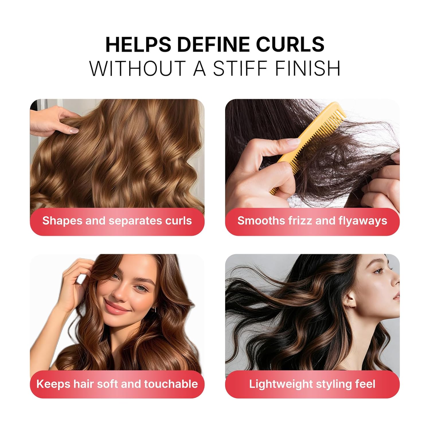 Curl Definition: Leave-in styling cream that helps shape wavy, curly, and coily hair while keeping curls soft, touchable, and easy to manage