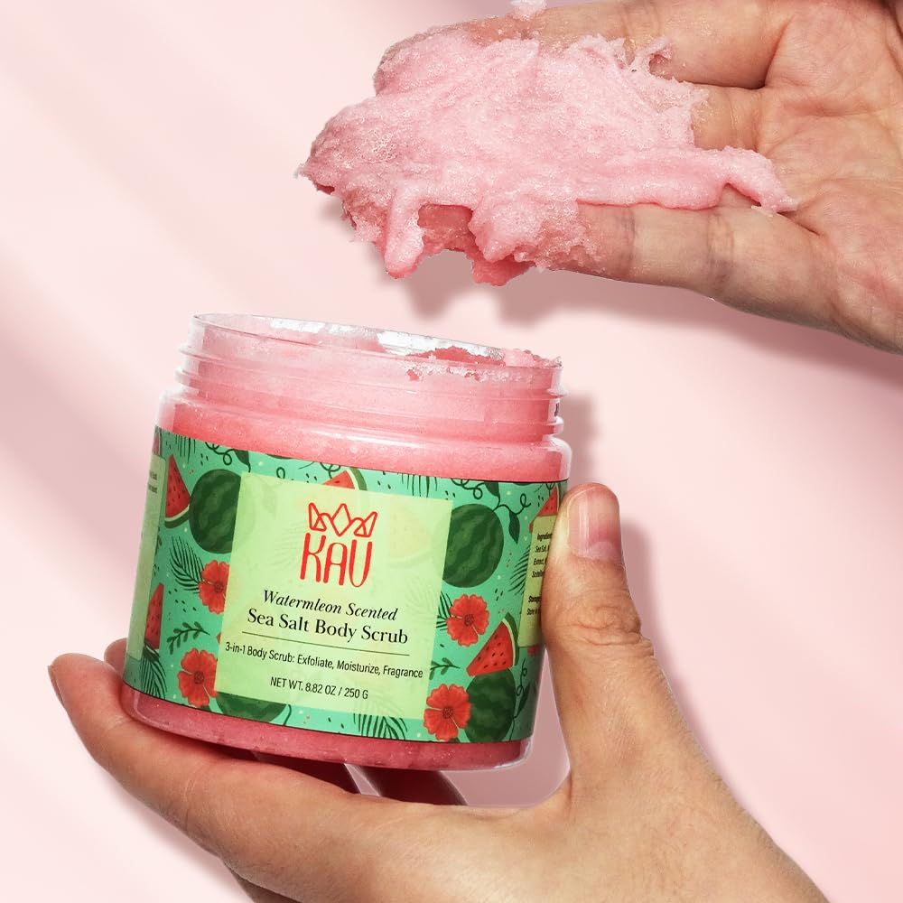 KAV Salt Body Scrub – Natural Exfoliating Salt Scrub for Body and Face, Helps with Moisturizing Skin, Dead Cell Removal, Rejuvenation and Relaxation, 4 Scents (Watermelon)