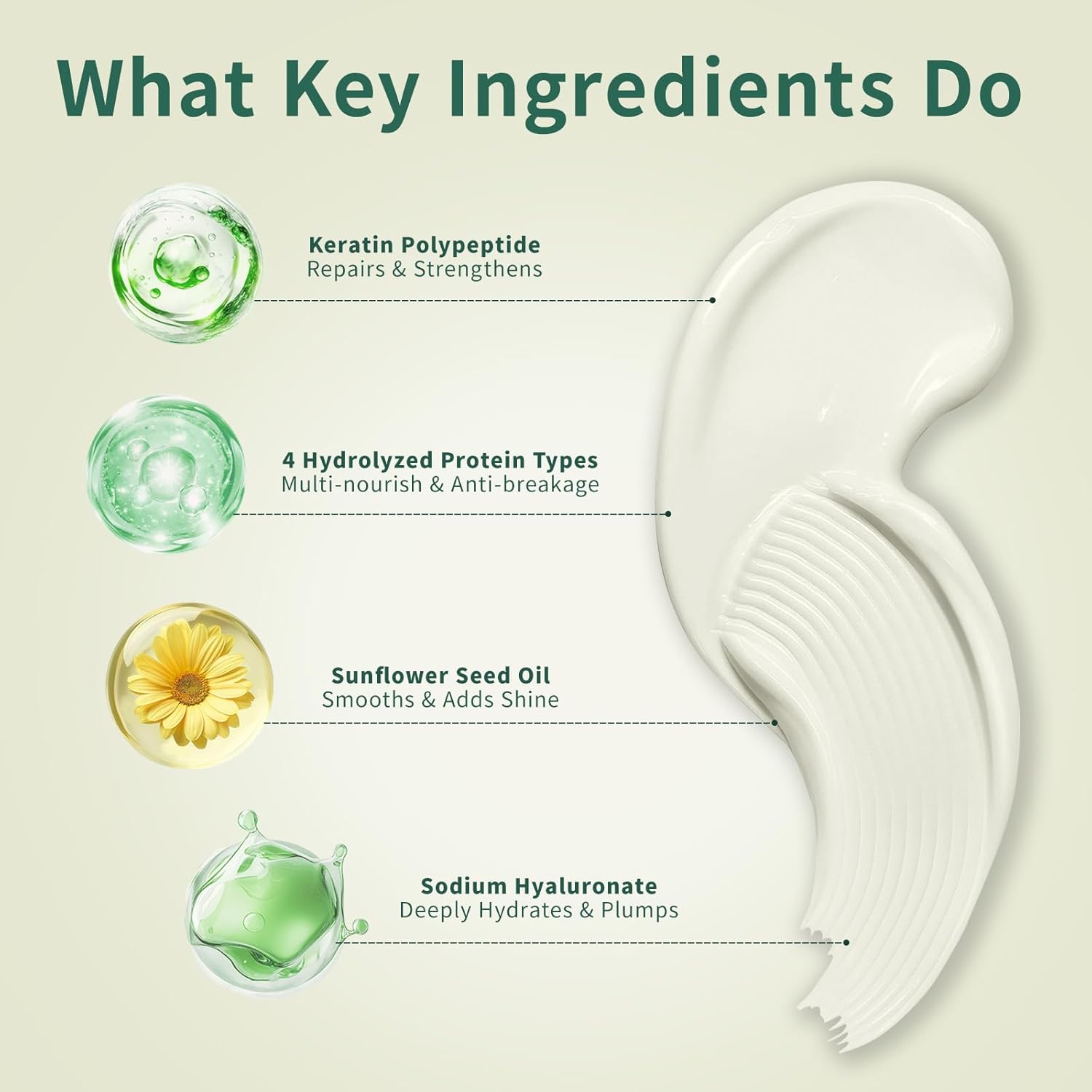 Keratin Polypeptide Hair Mask: Powered by a multi-keratin blend with small-molecule peptides, it dives deep into hair strands to boost resilience and elasticity, cutting down on breakage and split ends for stronger, healthier locks.
