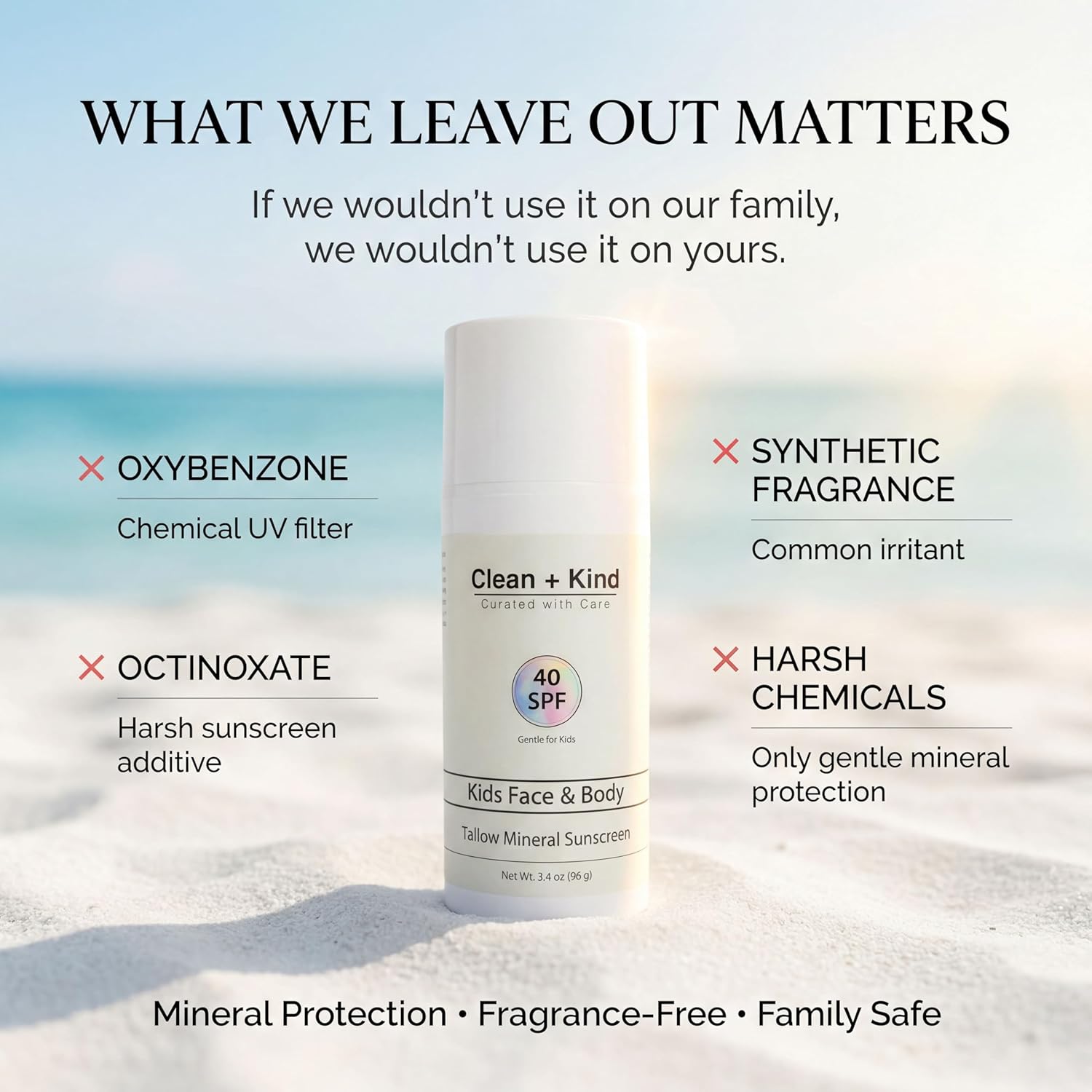 NOTHING HARSH No chemical UV absorbers. No synthetic fragrance. No unnecessary fillers.