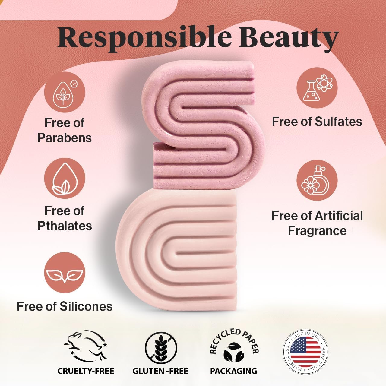 REDUCES FRIZZ & DETANGLES EASILY: Our solid bar combo has a moisture-boosting ingredient that helps detangle hair, reduce frizz, and improve softness. When used together, these bars support smoother styling and less tugging during comb-throughs.