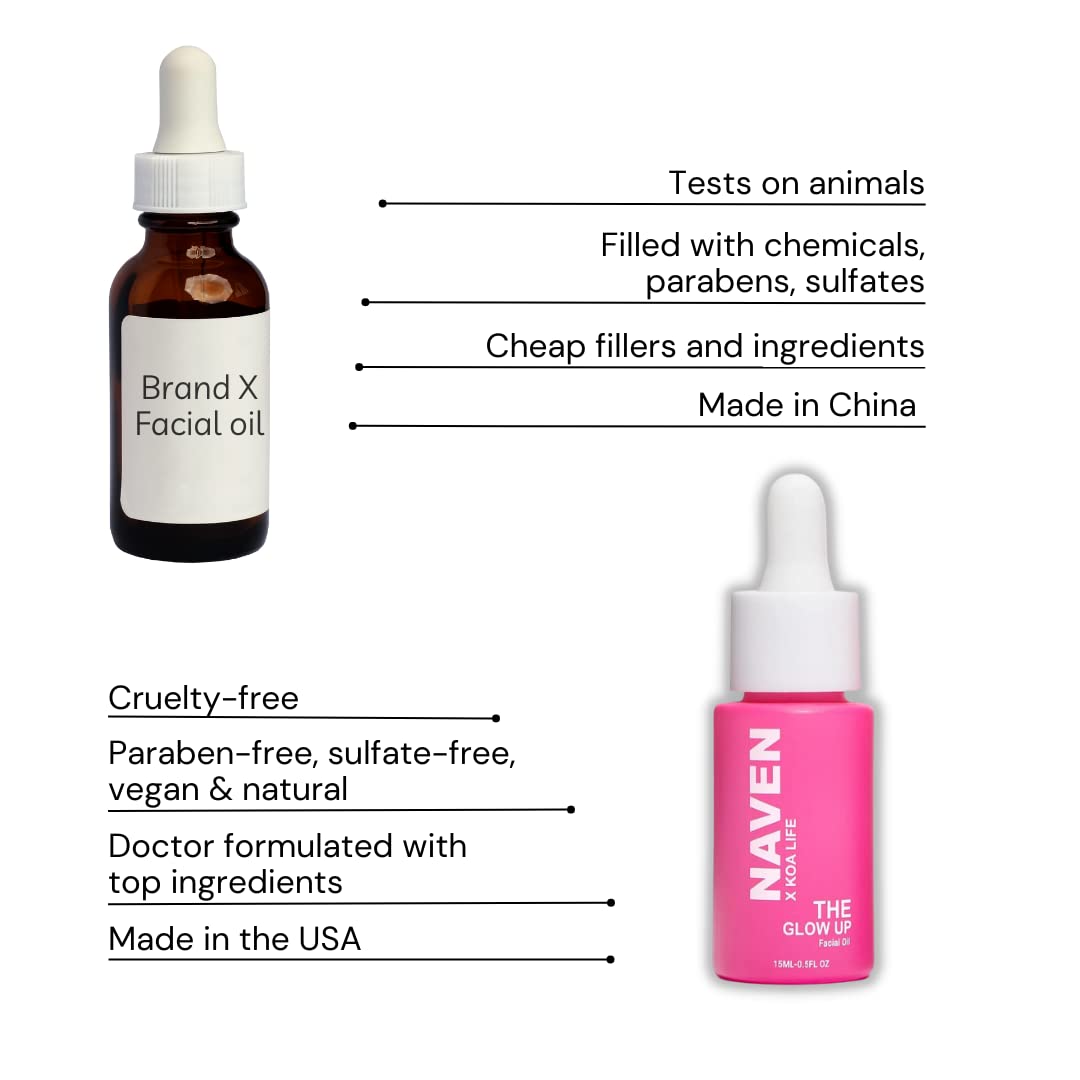 KOA LIFE X NAVEN The Glow Up – Daily Anti-Aging Facial Oil, Ultra Hydrating Face Oil, Face Moisturizer, Serums, Vegan, Chemical Free – 0.5 Fl Oz