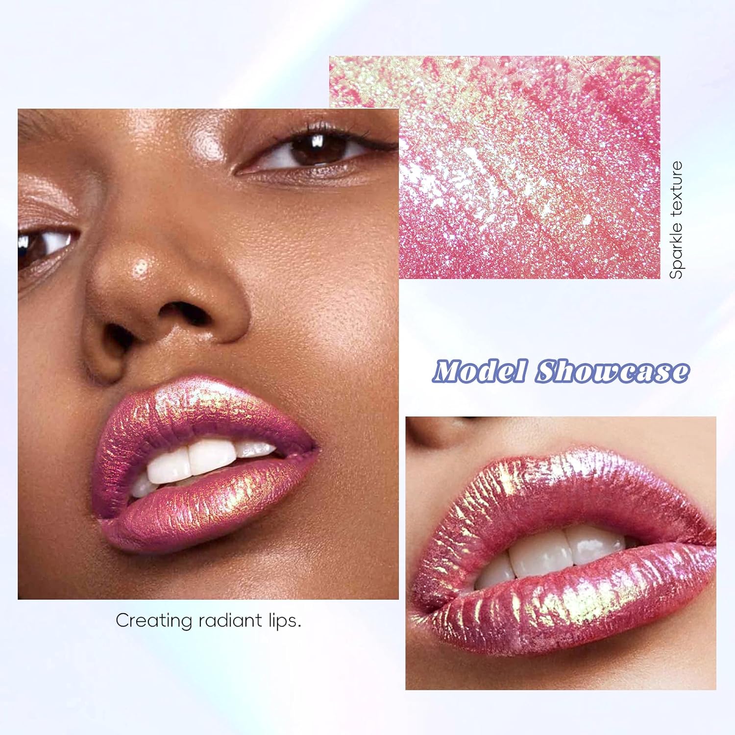 Highly Pigmented & Holographic Color Change Effect: The new Chameleon lip gloss presents a highly saturated dual-color/holographic light sensation, showing a rainbow-diamond color change effect under light refraction, creating a three-dimensional, personalized makeup, try it and you’ll fall in love with its shine