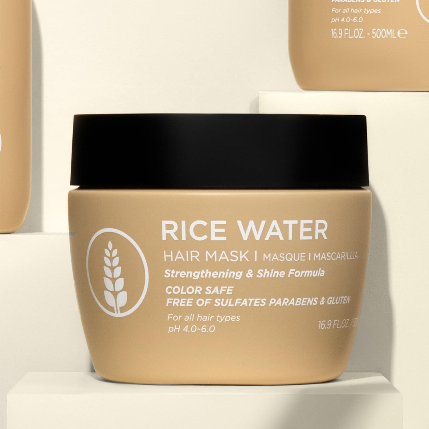 Care for Damaged Hair: Our rice water hair mask is formulated to help improve the appearance of split ends and support hair elasticity, leaving strands feeling smooth. Suitable for all hair types.
