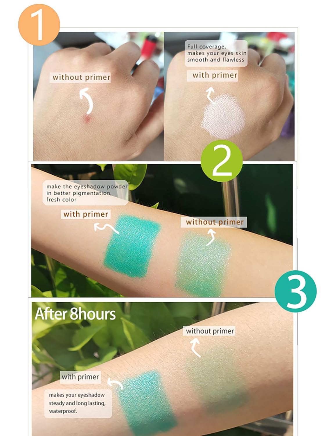 ❤【Long-lasting Waterproof & Smudgeproof】It creases proof and sweat-proof to prevent the eyeshadow color fade and stay on wit oily lids all day. Great for humid days or live in the heat, lounging at the beach or a long night out, your eye makeup will stand by you with this amazing primer! You can party all night, swim or sweat but not to worried about panda eyes.
