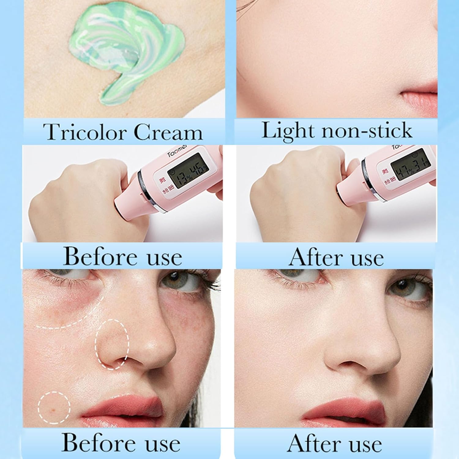 Color Correcting Primer: 3 In 1 primer for face before makeup,one step face primer for makeup, Swirled formula contains three color-correcting pigments,helps to even out skin tone, control oil and conceal blemishes, modify dark circles, redness and other skin tones, and make the skin smooth and delicate