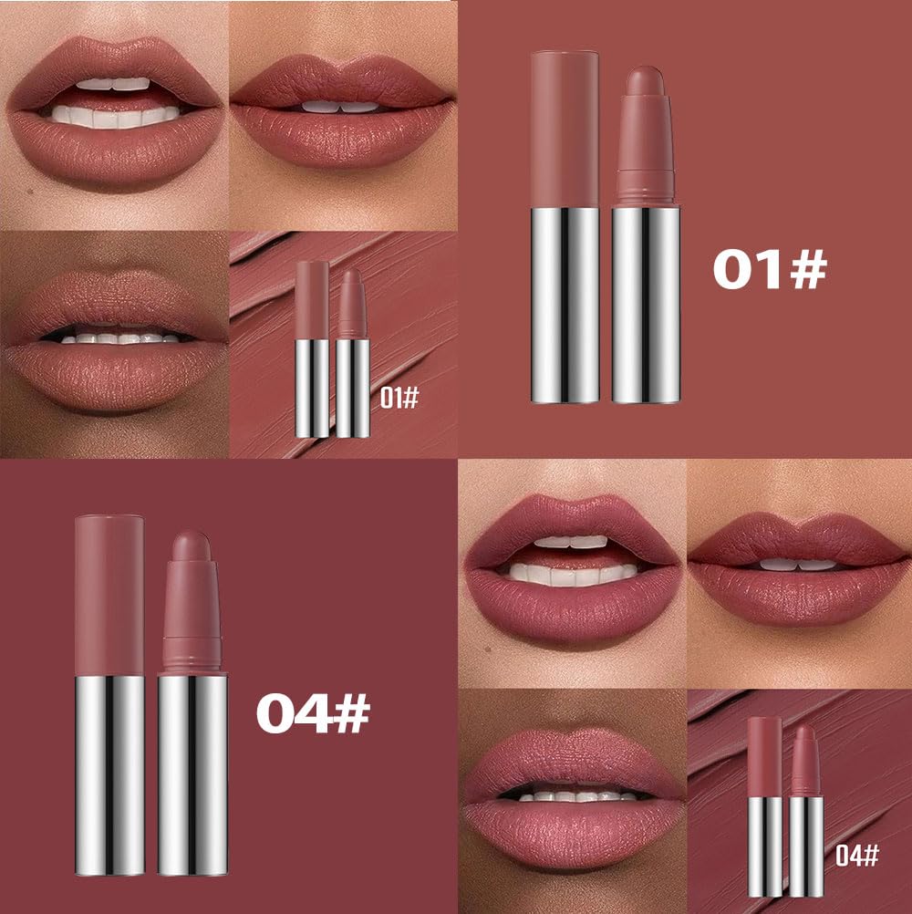 6 Trendy Matte Lip Colors to Choose From Available in 6 stunning matte shades: Muted Nude Brown, Dusty Rose Mauve, Warm Terracotta, Deep Rosewood, Burnt Coral, and Chocolate Brown. Perfect lipsticks for daily makeup, office, parties, or date nights.