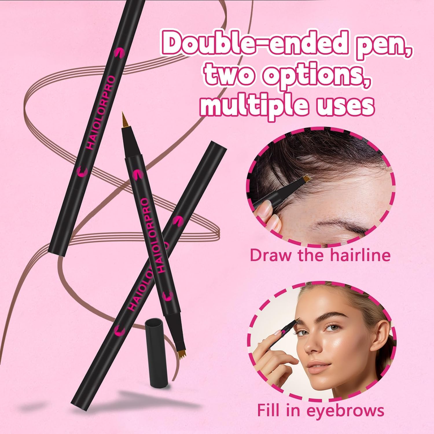 Microblading Eyebrow Pen, Eyebrow Pencils for Women Waterproof, 2-in-1 Hair Like Brow Pen with 4 Fork Tip and Precise Tip for Natural-Looking Brows, Last All Day-4PCS, Dark Brown
