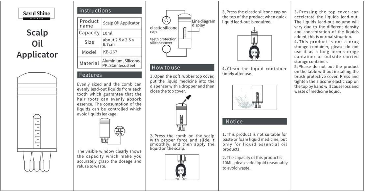 Our user manual provides clear instructions for using the Savul Shine Scalp Oil Applicator, ensuring a seamless experience from start to finish.