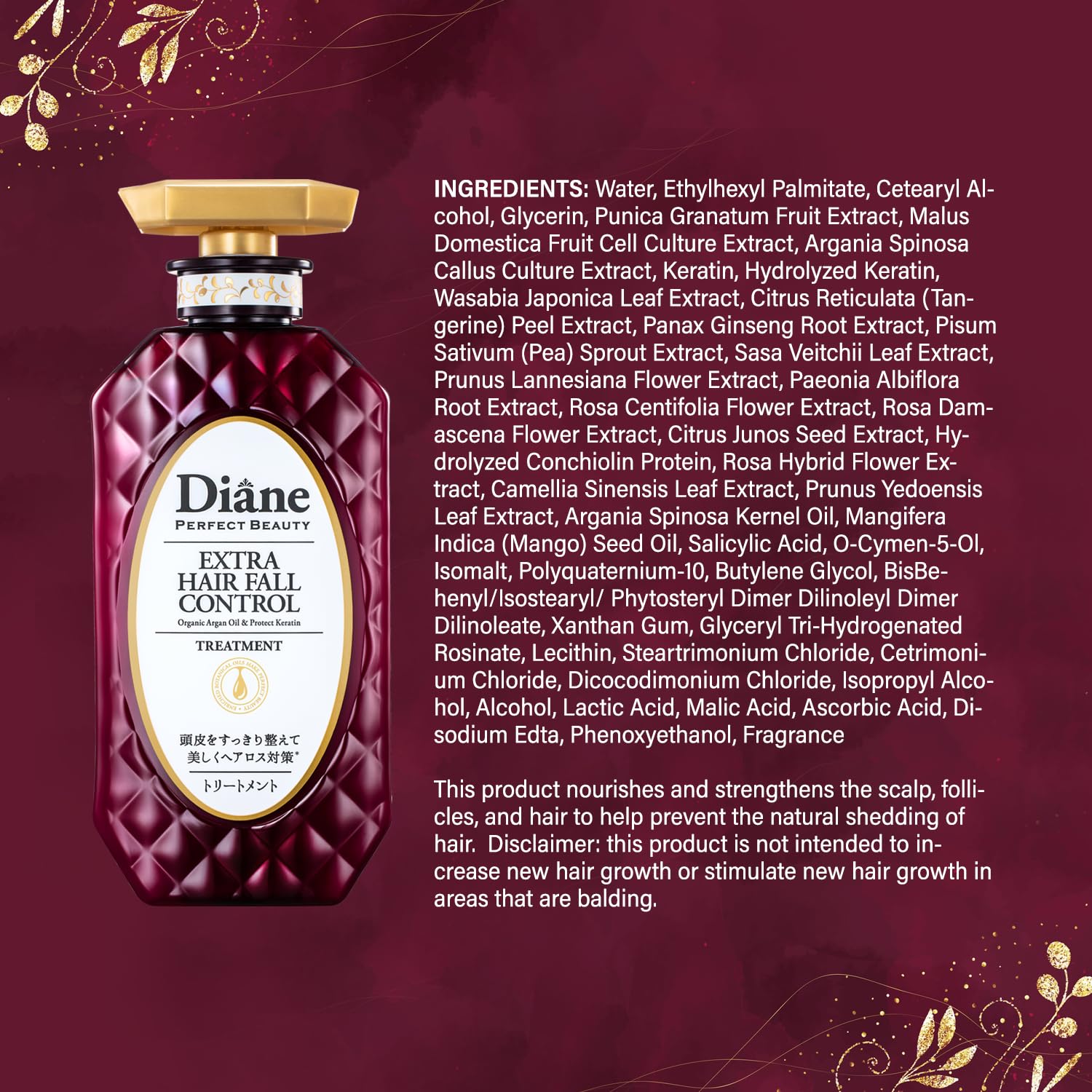 Be the first to review “Moist Diane Hair Loss Treatments for Women & Men, Dry Itchy Scalp Treatment by Keratin, Argan Oil, Ginseng Root & Protein, Hair Thickening Conditioner from Japan, 15.2 Fl Oz, EXTRA HAIR FALL CONTROL”