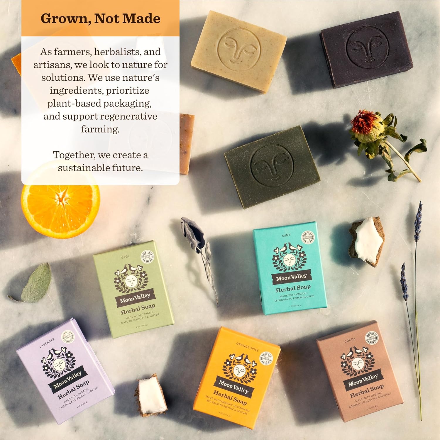 Moon Valley Organics Natural Body Wash and Face Wash Soap Bar Natural Bar Soap, Pack of 3, Orange Spice
