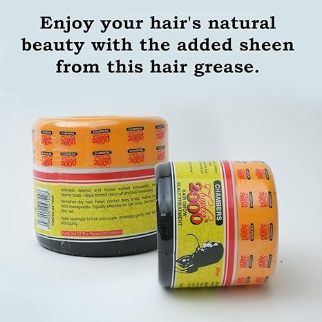 Sold in all three sizes 100grams (small), 165 grams (medium), and 300 grams (large) For all hair type. A unique natural blend of scalp stimulating to support the growth of healthy hair. BENEFITS Antiseptic Sulphur and herbal treatment (solution) that stimulates the scalp, glorifies the hair germs associated with dandruff and breakage. Condition: dry hair, helps relieve itchy scalp. Makes hair grow more manageable. Equally effective for gel curls. Relaxed, Bald head Afro etc. Apply Sparingly to hair scalp, make sure it gets on the scalp very well to qualify scalp treatment. Manage gently then style hair thoroughly. Please note that due to the inflation, our partner was forced to slightly reduce the weight of the medium hair oil by 10g to be able to cover customers demand .The actual weight (165g ) for the same cost. Thank you for your understanding. Stay safe, stay blessed!