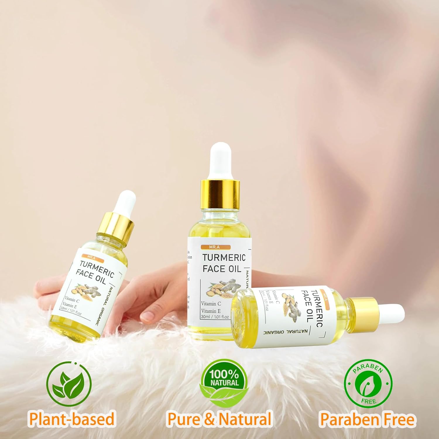 Natural Formulation: Specially added vitamin C ingredient which can promote collagen production and increase skin moisture content. This turmeric oil quickly absorbs into your skin to promote firm, radiant looking skin.