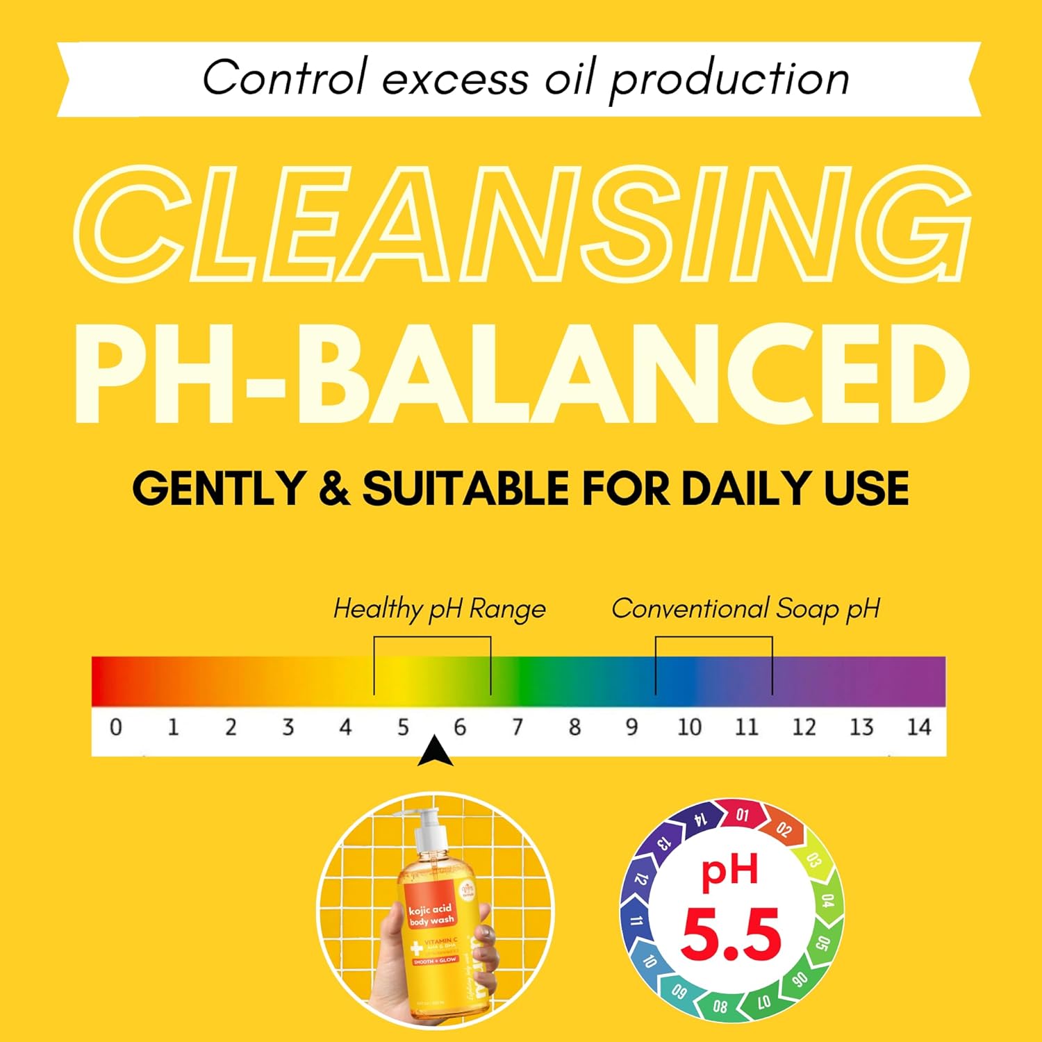 🧡[ pH BALANCED 5.5 FOR SKIN ] Skin-friendly pH of 5.5 to ensure a gentle yet effective cleanse for even sensitive skin. Infused with Salicylic Acid, body wash helps exfoliate rough skin and bumps, leaving it soft, smooth, and refreshed.
