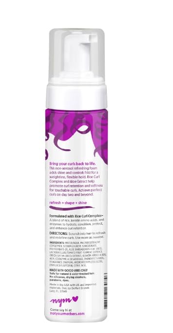 Foam for refreshing, reshaping, and adding shine to curly hair Formulated with Rice Curl Complex and Aloe Extract