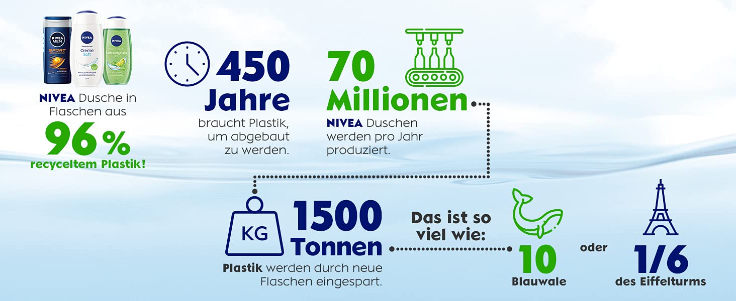 GOOD FOR SKIN AND ENVIRONMENT: The formula without microplastic is 98% biodegradable and the bottle is made from 96% recycled material (without cap and label). Every shower experience is transformed into a pampering moment with Nivea – with the Nivea Lemongrass & Oil care shower.