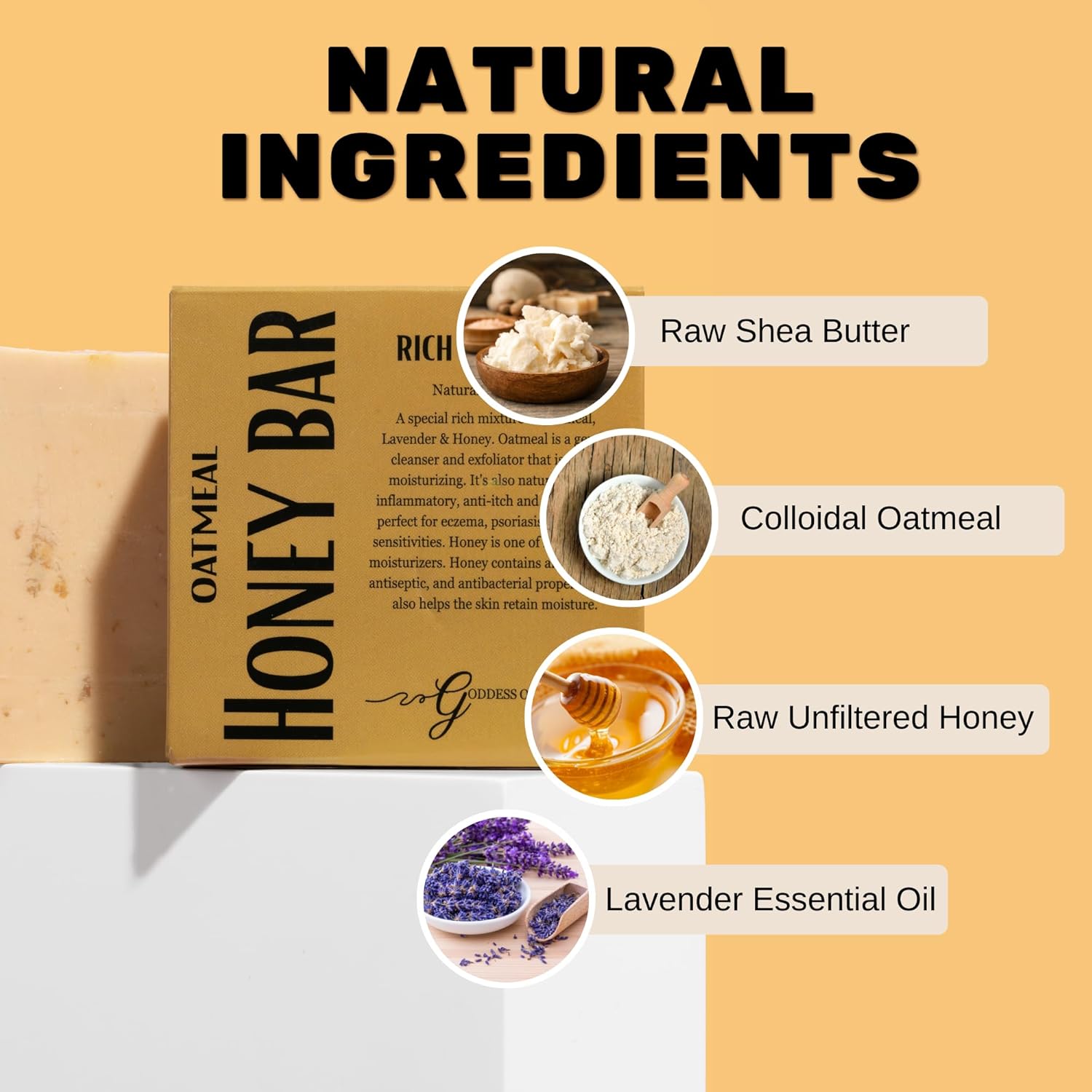 Oatmeal & Honey Bar – Natural Soap for Eczema, Dry & Sensitive Skin | Moisturizing & Soothing Relief | Handmade with Organic Oats, Honey & Shea Butter | Gentle & Vegan (1)