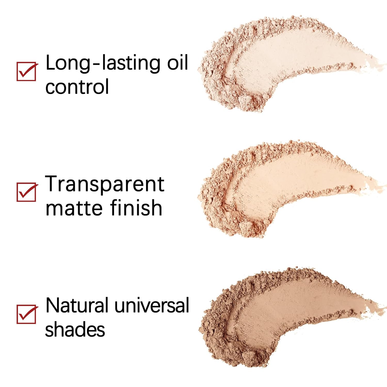 【Setting Powder】:Matte portable face pressed powder compact are more storable than normal loose powders, and they don’t fly when you use them. Translucent poreless finishing powder, natural flawless.