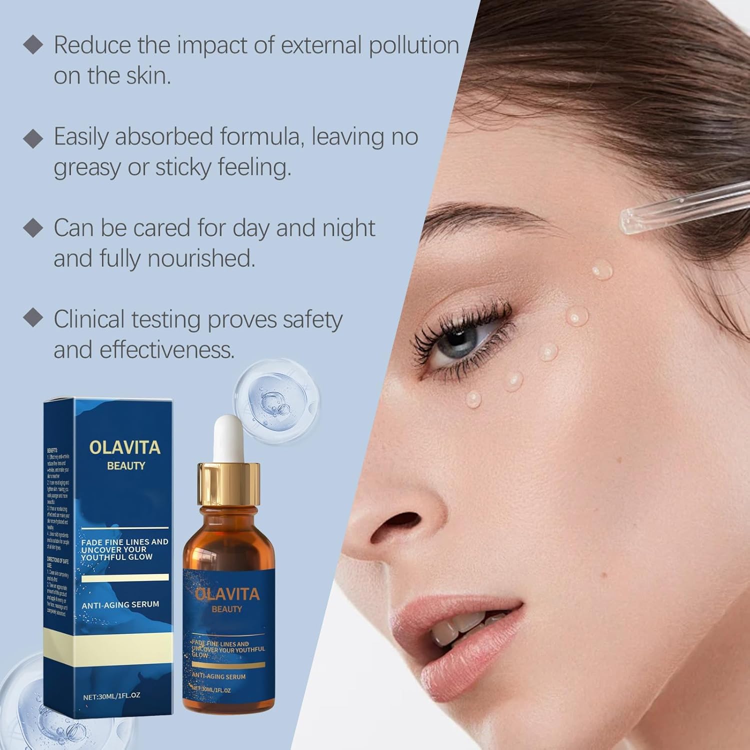 【Olavita Liquid Solution Anti Aging Serum】Our essence deeply moisturizes the skin, effectively reduces wrinkles, fine lines and other blemishes, forms a protective film, and makes the skin smooth and tender